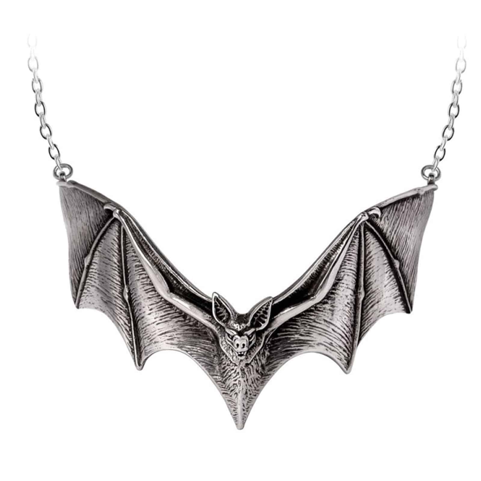Wie aus dem Nichts hüllt dich ein schwarzer Mantel der Ewigkeit ein – und dieser Choker aus feinstem englischen Zinn wird zu deinem dunklen Begleiter. Mit kunstvoll gearbeiteten, naturgetreuen Details verkörpert er den geheimnisvollen Geist der Fledermaus, Symbol der Nacht und ihrer Mysterien.