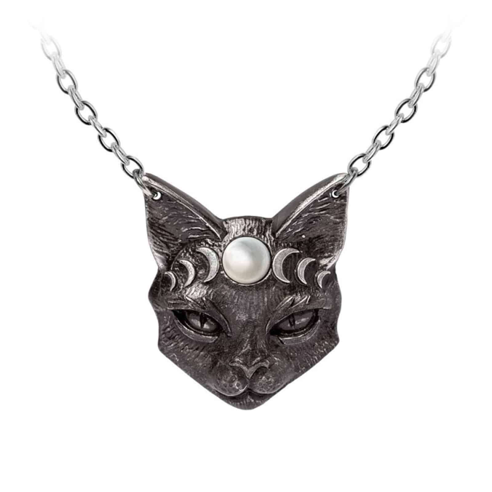 Entfessle Deine innere Magie mit unserer atemberaubenden, handgefertigten Katzenkette aus geschwärztem Zinn – ein bezauberndes Schmuckstück für Katzenliebhaber und Mystiker gleichermaßen. Diese detailreiche Kette zeigt eine wunderschön gearbeitete schwarze Katze, elegant verziert mit Mondphasen-Details. Das Herzstück dieses mystischen Designs bildet ein faszinierendes Perlmutt-Mittelstück.