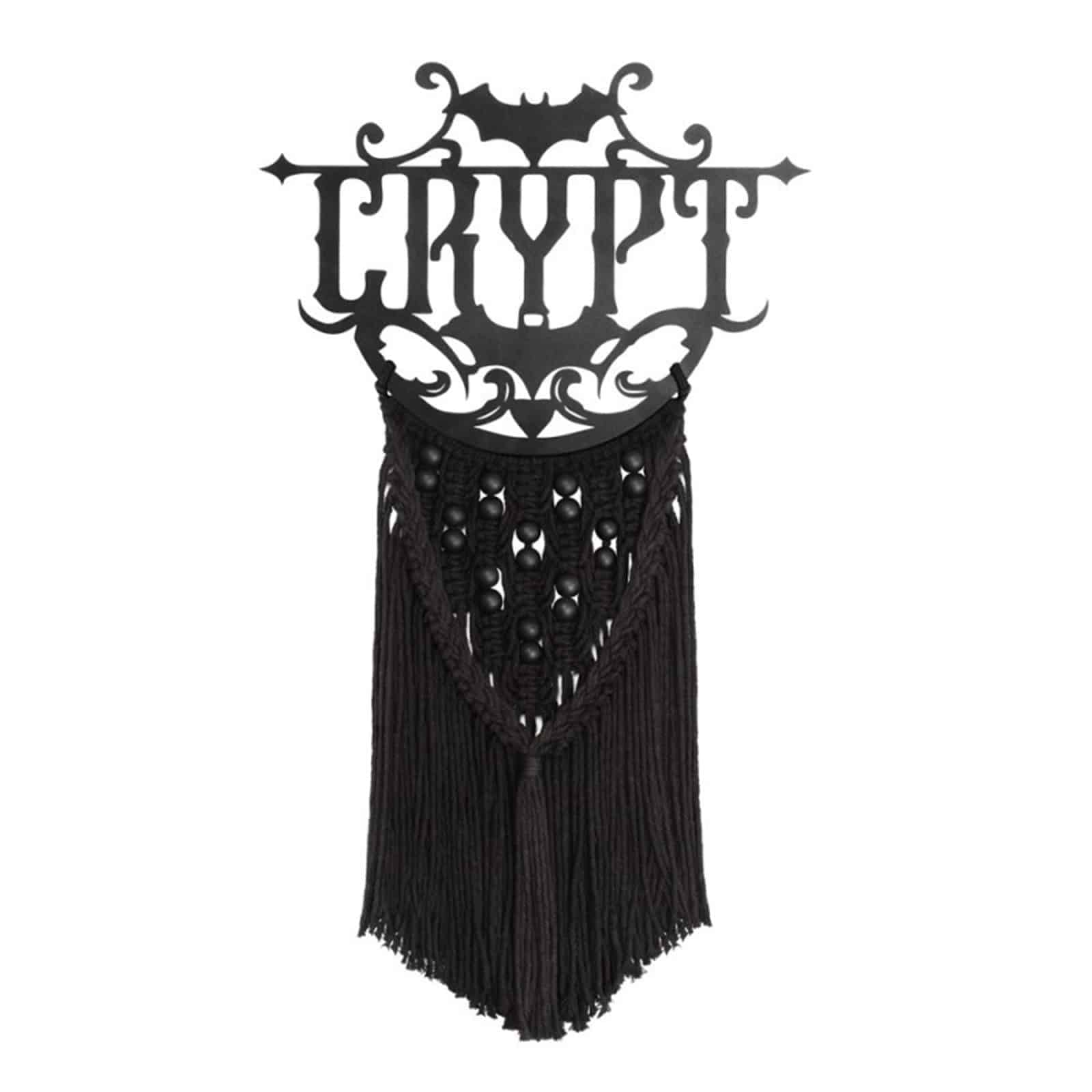 Handgefertigter Macrame-Wandbehang mit dekorativem „Crypt“-Schriftzug