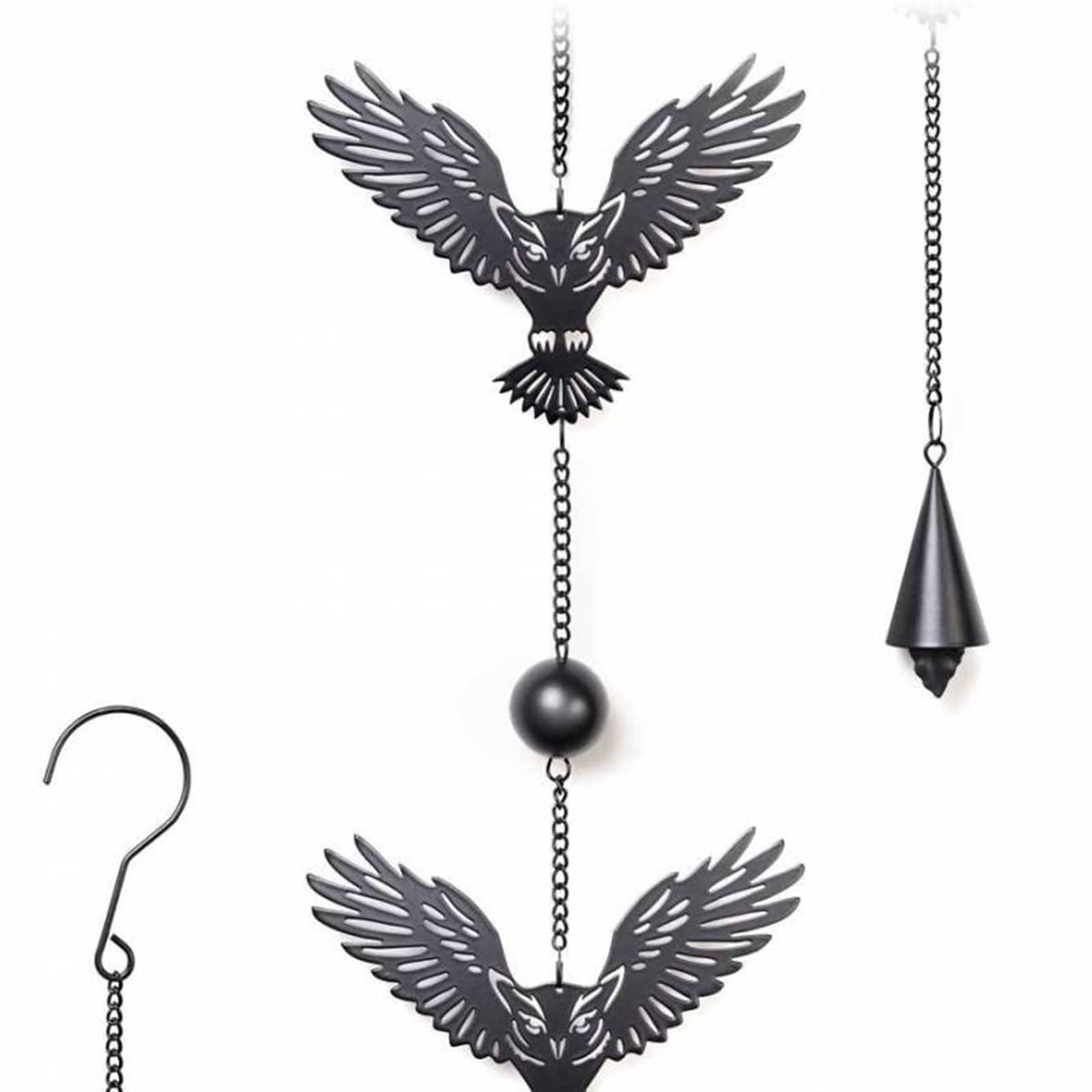 3 Eulen unterteilt von Kugeln sind an einer schwarzen Kette befestigt.