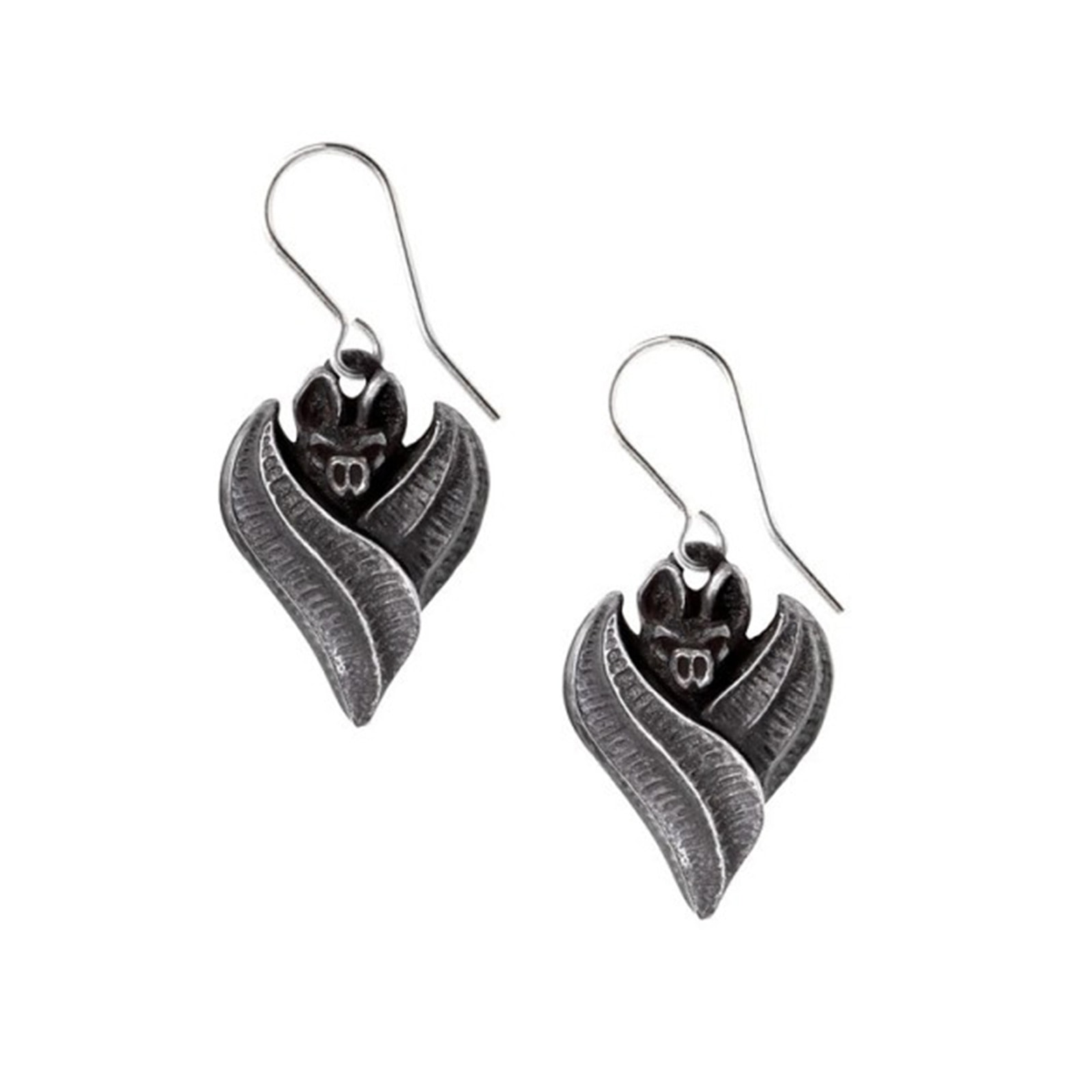 Diese eleganten Ohrhänger entspringen der dunklen Mythologie der Evil-ution-Kollektion und verkörpern die stille Macht der Nacht. Das Design zeigt eine kleine, ruhende Fledermaus, in ihre eigenen Flügel gehüllt – ein Sinnbild für Transformation, Geduld und verborgene Stärke. Gefertigt aus geschwärztem, feinem englischem Zinn mit handpolierten Akzenten, entfalten die Details bei jeder Bewegung ein dezentes Schimmern. Leicht, ausdrucksstark und voller gothic Anziehungskraft sind diese Ohrringe ein stilvolles Statement für alle, die den Zauber der Dunkelheit lieben.