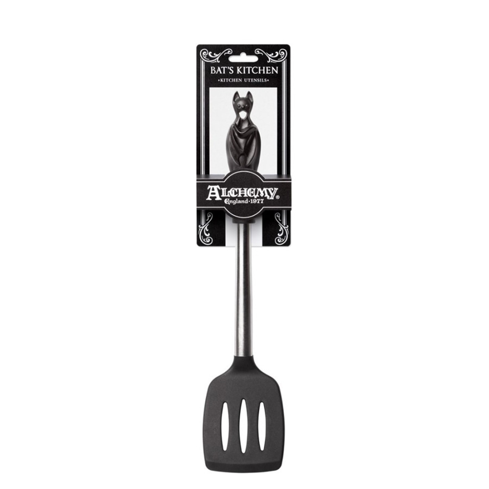 Wenn Pfannkuchen gewendet, Burger gebraten oder Hexenrezepte angerührt werden, bringt dieser Fledermaus-Wender genau die richtige Portion düsterer Magie in deine Küche. Die Alchemy Bat Spatula kombiniert robustes Küchenwerkzeug mit einem kunstvoll modellierten Fledermausgriff – ideal für alle, die beim Kochen ihre Gothic-Ästhetik leben möchten. Der flexible Schaufelkopf gleitet mühelos unter jedes Gericht, während der Griff sicher und angenehm in der Hand liegt.