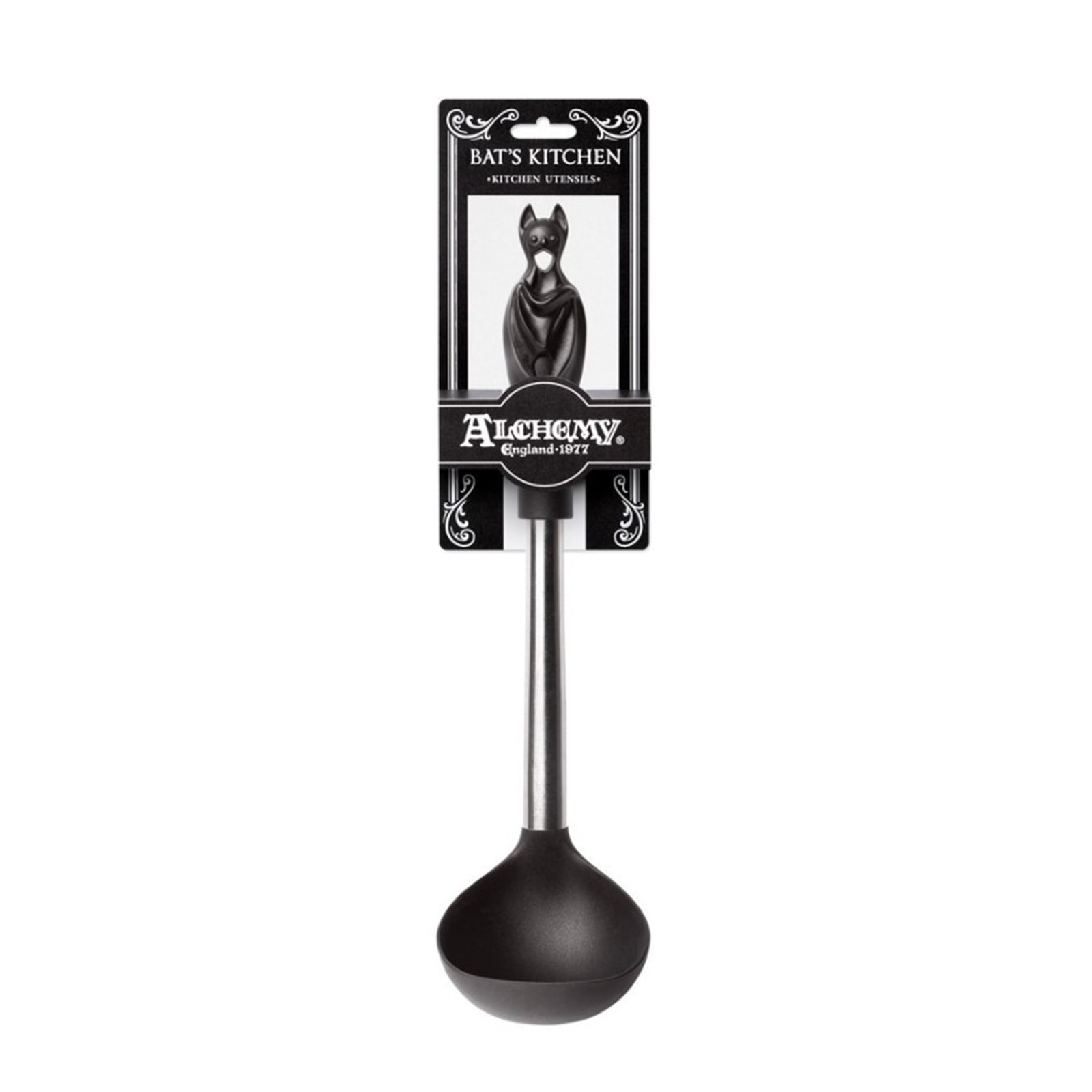 Wenn Suppen, Eintöpfe und Hexentränke auf deinem Herd brodeln, ist dieser Fledermaus-Schöpflöffel das perfekte Werkzeug: Der Alchemy Bat Ladle kombiniert funktionale Küchenhilfe mit einer ordentlichen Portion düsterem Charme. Der kunstvoll modellierte Fledermausgriff sorgt für einen sicheren, mystischen Halt, während die tiefe Kelle zuverlässig Portion für Portion schöpft – ideal für Halloween-Küchen, Gothic-Home-Deko oder für alle, die selbst beim Kochen ihren Dark-Lifestyle leben möchten.