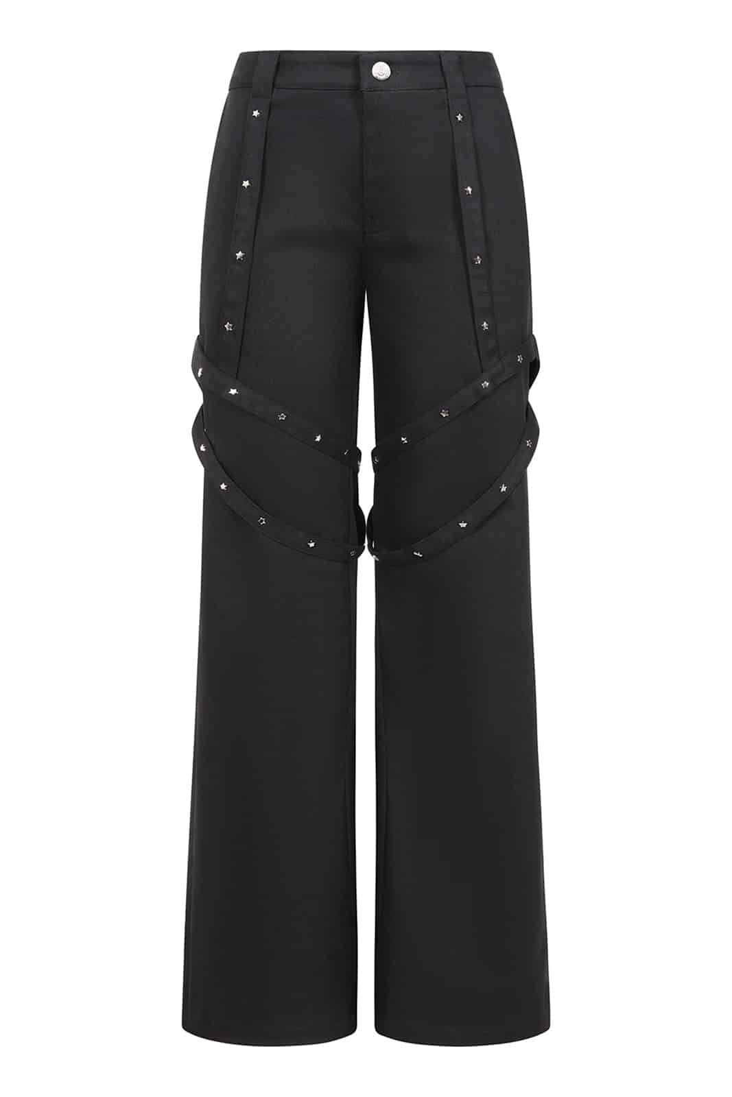 Diese alternative Hose von Banned vereint Komfort mit einem auffälligen, edgy Design. Die weite Beinform sorgt für Bewegungsfreiheit, während die zahlreichen Riemen mit silbernen Nieten entlang der Beine und Oberschenkel den Look rebellisch und punkig wirken lassen. Funktionale Taschen und ein klassischer Knopfverschluss machen die Hose alltagstauglich, ohne an Style einzubüßen. Perfekt für alle, die ihren Gothic- oder Punk-Style selbstbewusst unterstreichen möchten.