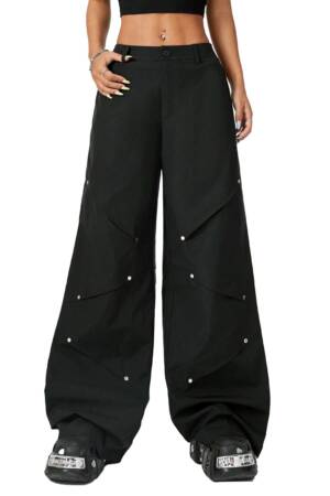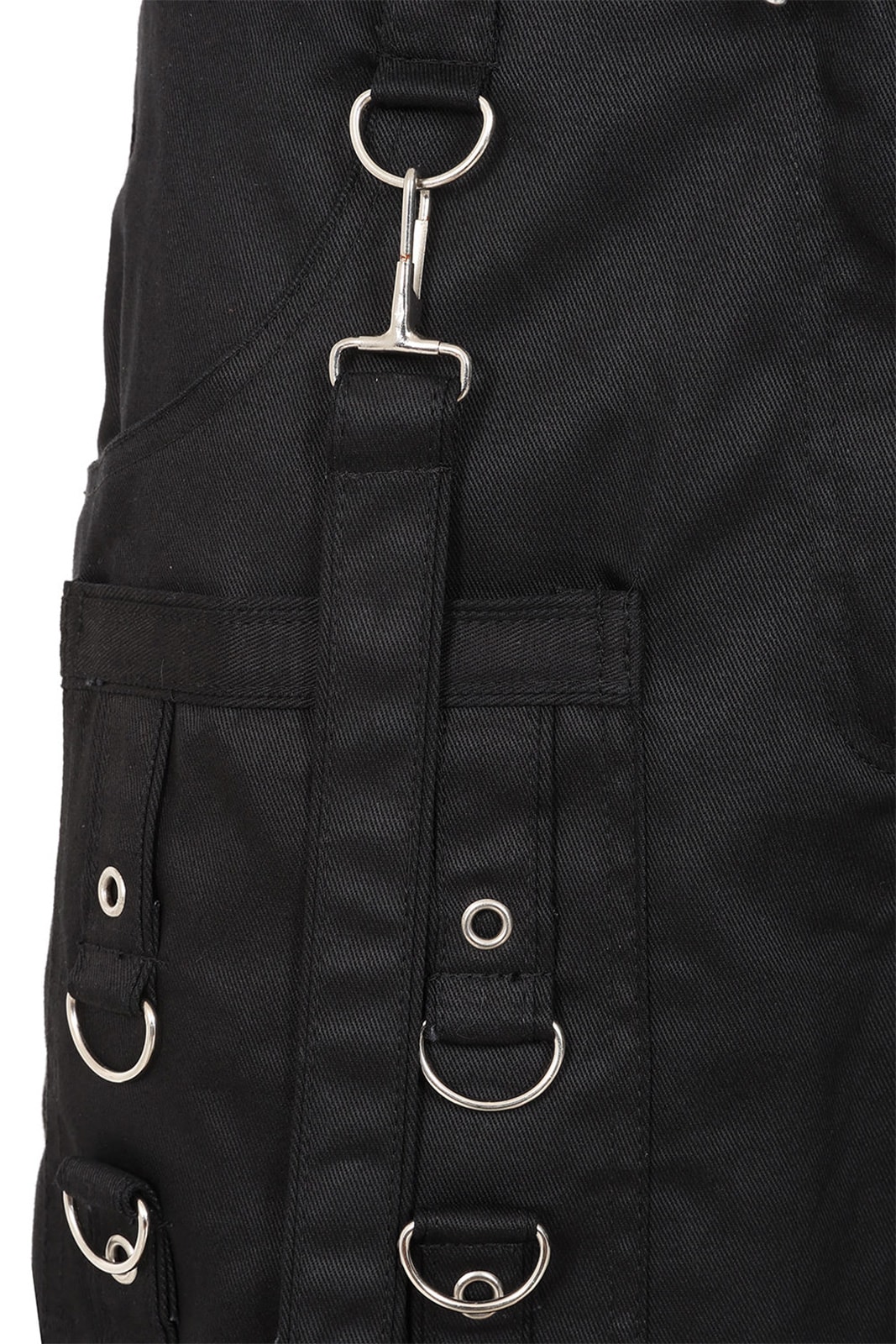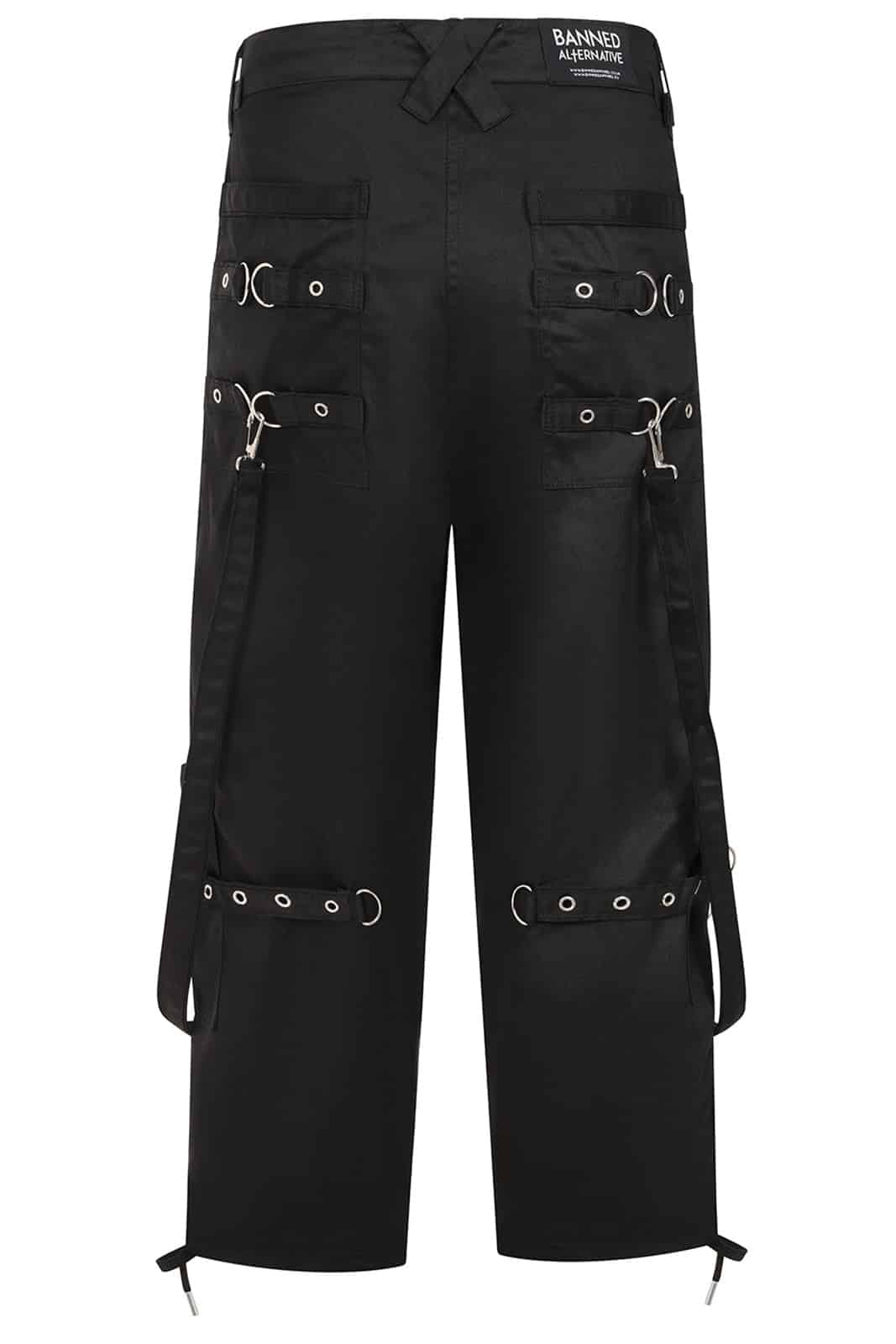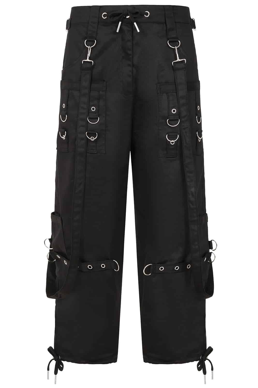 Schwarze Industrial-Vibes für deinen Alltag: Diese komplett schwarze Bondage-Cargohose bringt alles mit, was du für einen markanten Alternative-Look brauchst. Der feste Baumwollstoff sorgt für ein angenehmes Tragegefühl, während die vielen Riemen, D-Ringe und Taschen den typischen Cyber-/Nu-Goth-Style liefern – perfekt für Konzerte, Festivals oder einfach für deinen täglichen Darkwear-Auftritt.