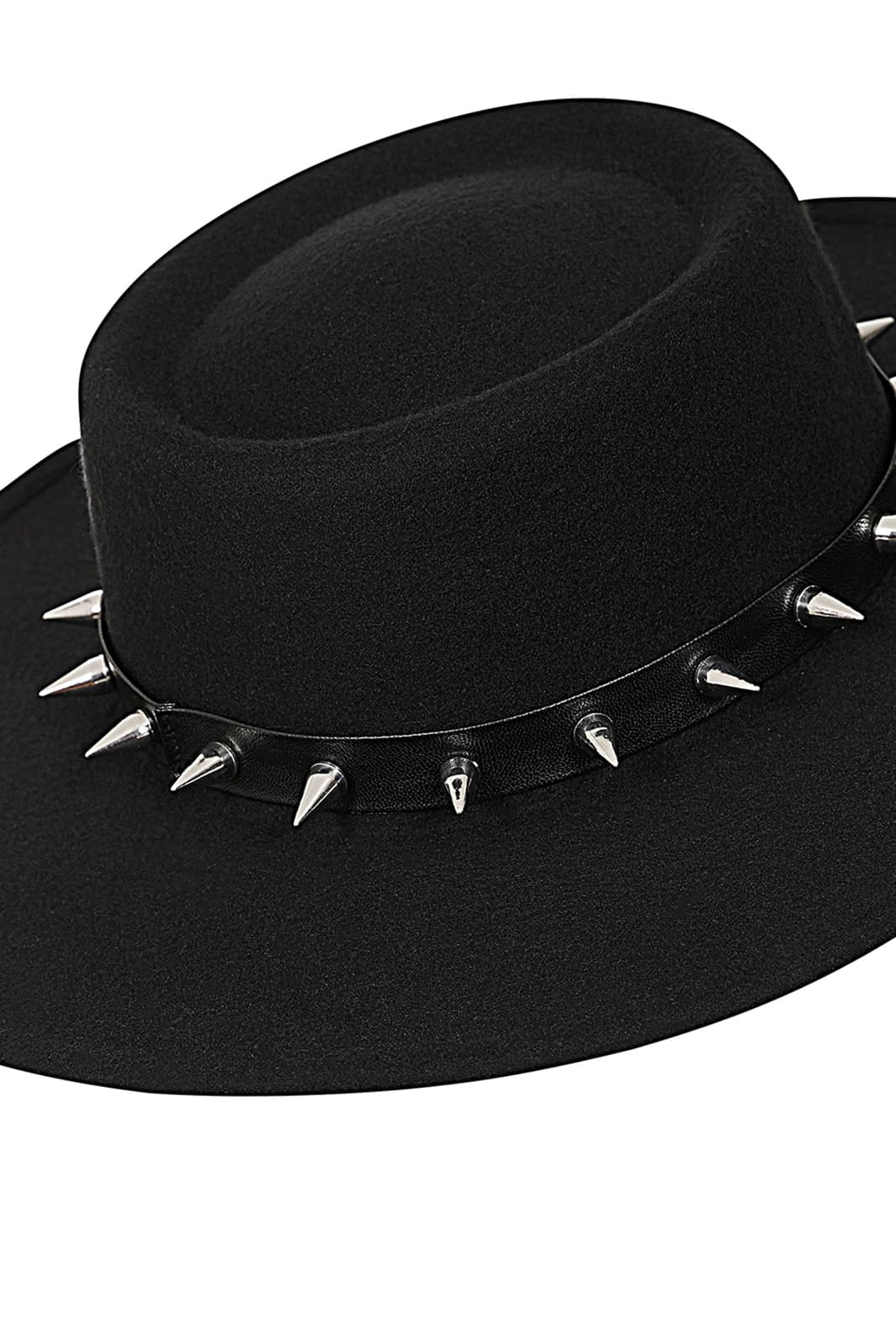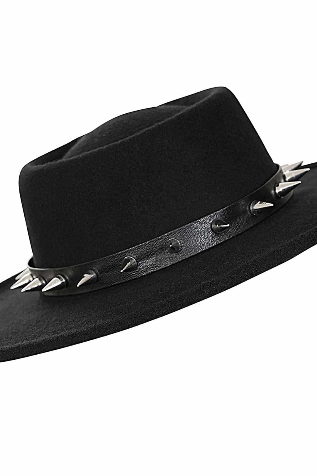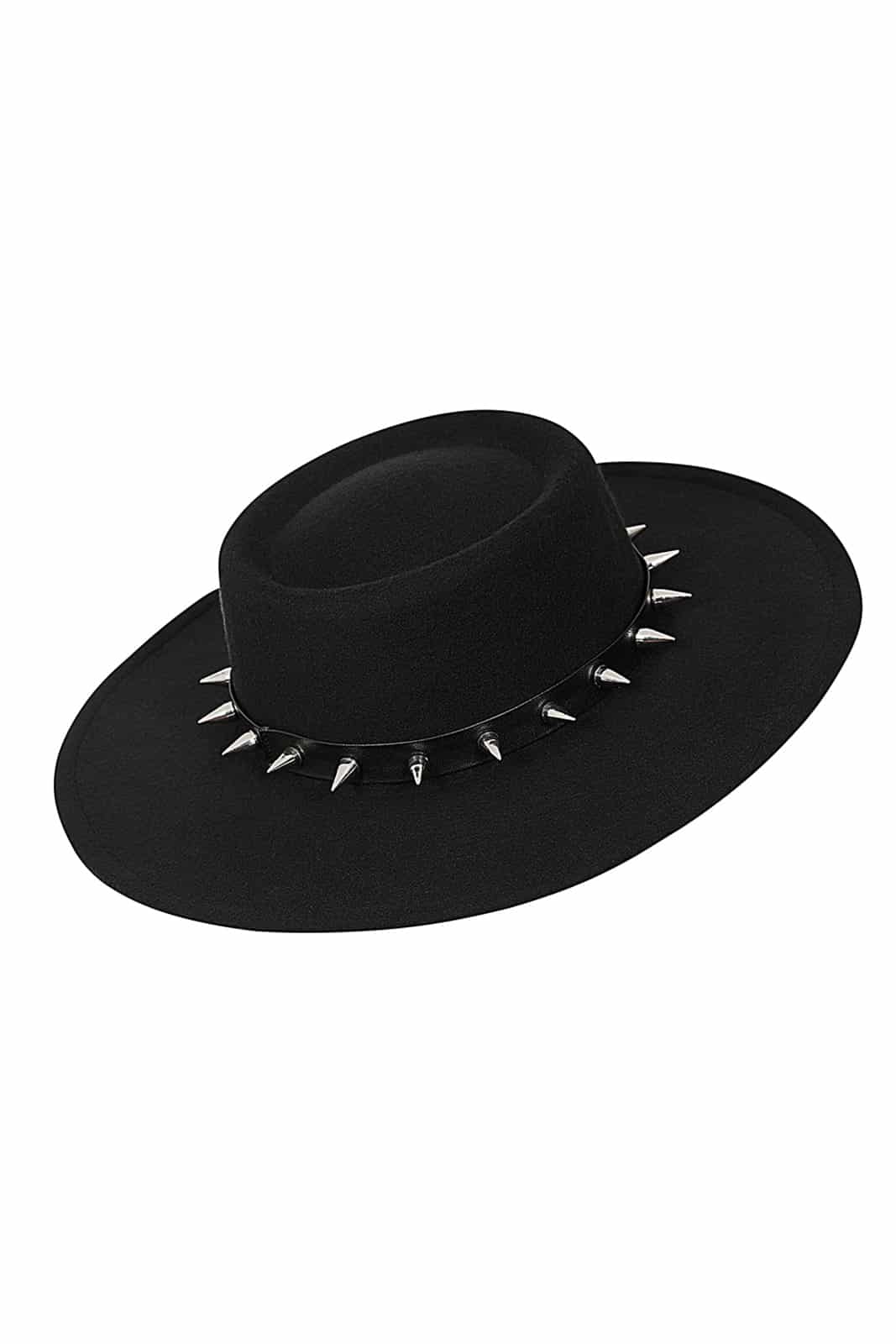 Der Midnight Muse Fedora von Banned verbindet klassische Eleganz mit einem markanten Gothic-Akzent. Die zeitlose Hutform wird durch ein auffälliges Band mit silberfarbenen Spike-Nieten ergänzt und verleiht jedem Outfit eine rebellische Note. Ein perfektes Accessoire, um schlichte Looks im Handumdrehen zu einem Statement zu machen.