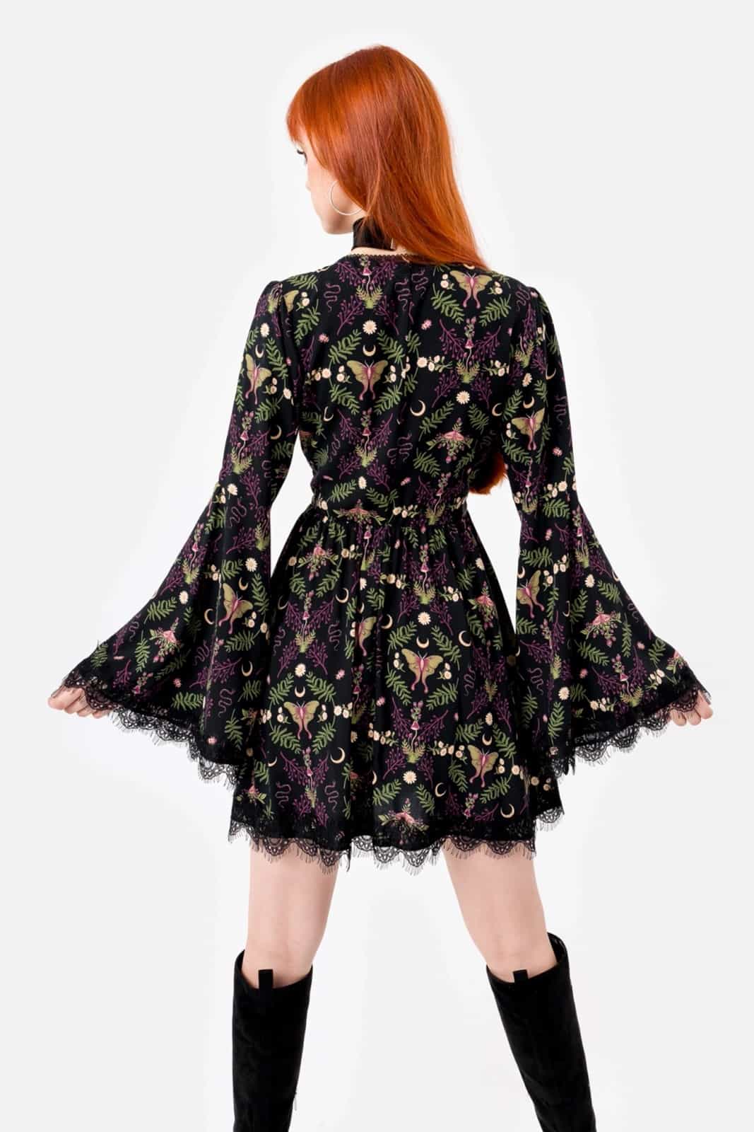 Feminin, düster und mit subtiler Rebellion – das Black Dreamscape Kleid von Banned verbindet eine schmeichelnde Silhouette mit raffinierten Details. Die taillierte Form mit seitlicher Schnürung betont die Figur, während der leicht ausgestellte Rock für Bewegung sorgt. Ein vielseitiges Statement-Piece für Gothic- und Alternative-Looks.