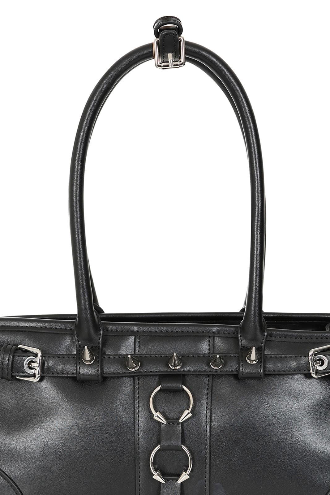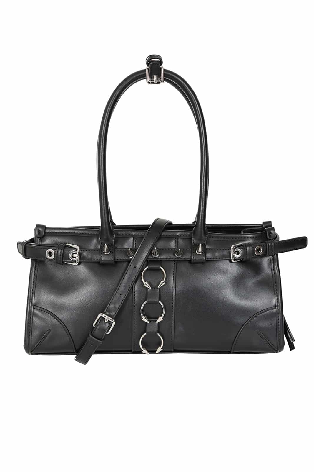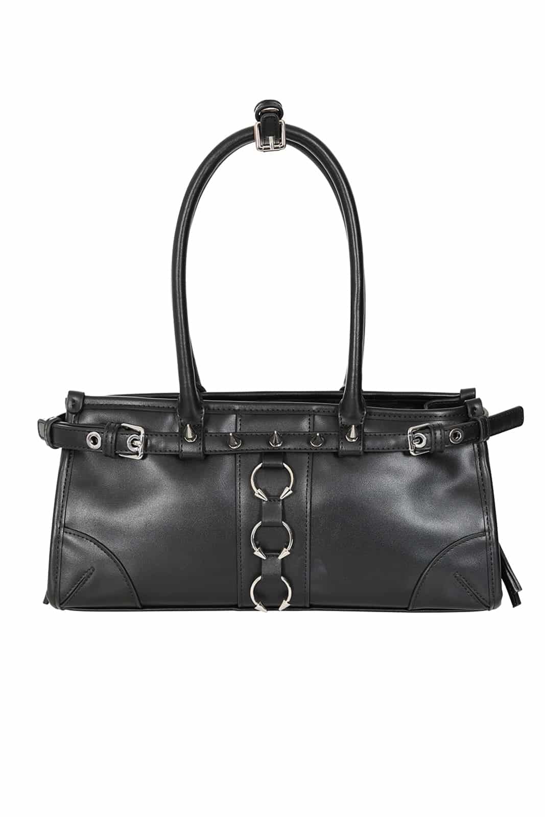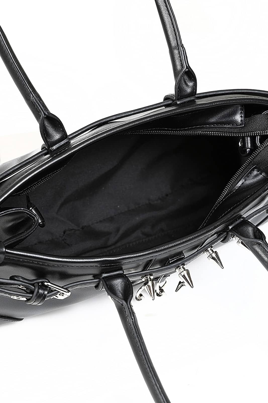 Mit der Thorne Handtasche von Banned setzt du ein klares Statement. Gefertigt aus hochwertigem, veganem Kunstleder, überzeugt sie mit silbernen Ring- und Nieten-Details sowie verstellbaren Riemen, die den Look abrunden. Das elegante Design verbindet klassische Form mit einem markanten Gothic-Touch – ideal für Alltag und besondere Anlässe.