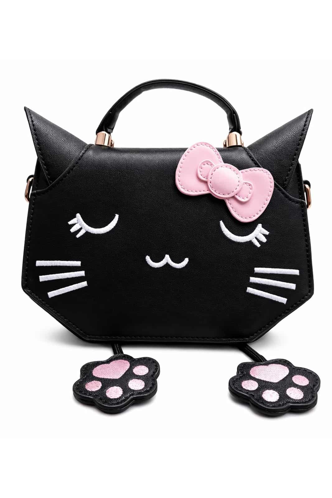 Verspielte Statement-Tasche in süßem Katzen-Design mit gesticktem Gesicht und zarter Schleife. Kompakt, aber überraschend praktisch – perfekt für Alltag, Events oder als Eyecatcher im Outfit.