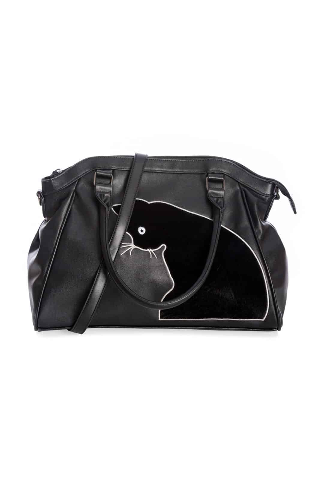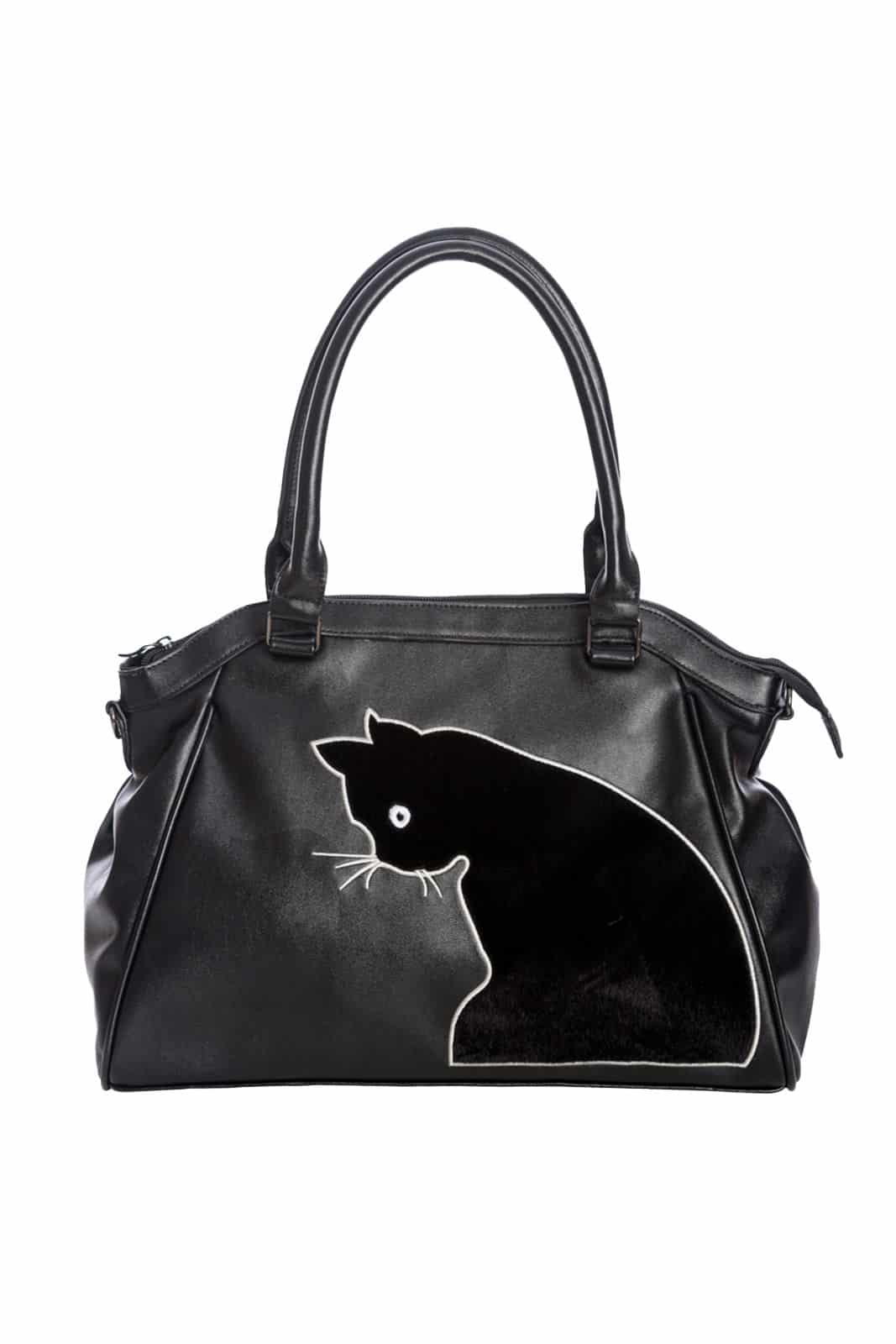 Geräumige Handtasche aus hochwertigem Kunstleder mit süßen Katzenmotiv auf der Vorderseite. Ausgestattet mit Umhängegurt und Reißverschluß.