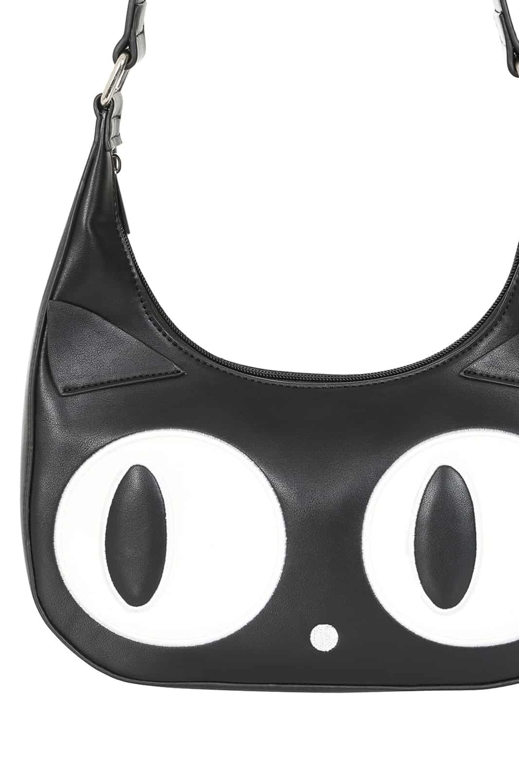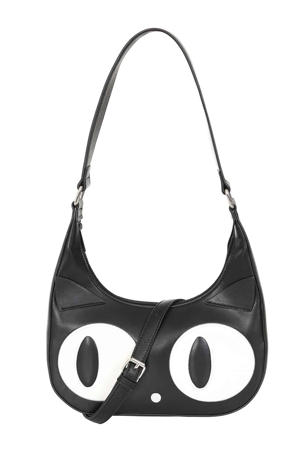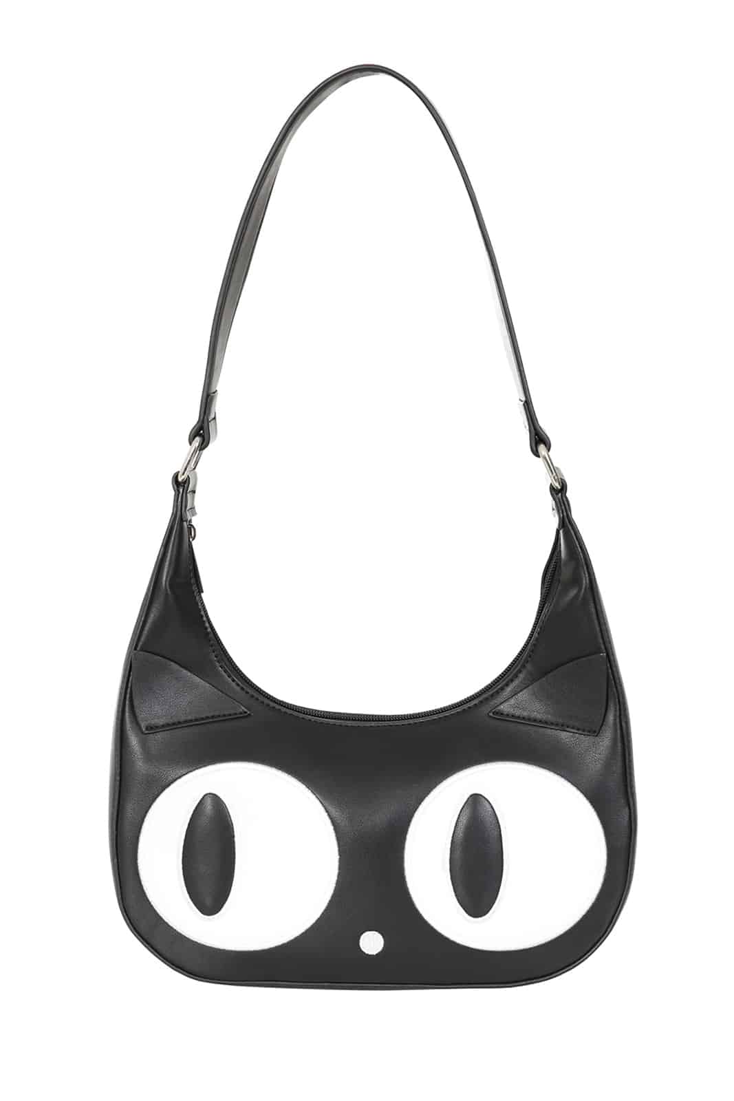 Diese verspielte Schultertasche von Banned ist ein echter Blickfang für Katzenliebhaber und Fans von Kawaii-Styles. Das Design zeigt ein niedliches Katzen-Gesicht mit großen weißen Augen und kleinen Ohren, das sofort für einen charmanten Look sorgt. Hergestellt aus hochwertigem Kunstleder, vereint sie verspielte Optik mit praktischer Funktionalität und bietet genügend Platz für deine täglichen Essentials.