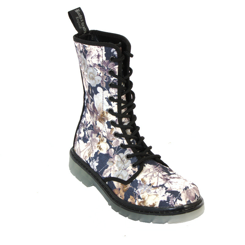 Klassischer 10-Loch Stiefel aus Synthetikmaterial mit leichter, transparenter Kunststoff-Sohle. Ohne Stahlkappe. Angenehmer Tragekomfort aufgrund des geringen Gewichtes.