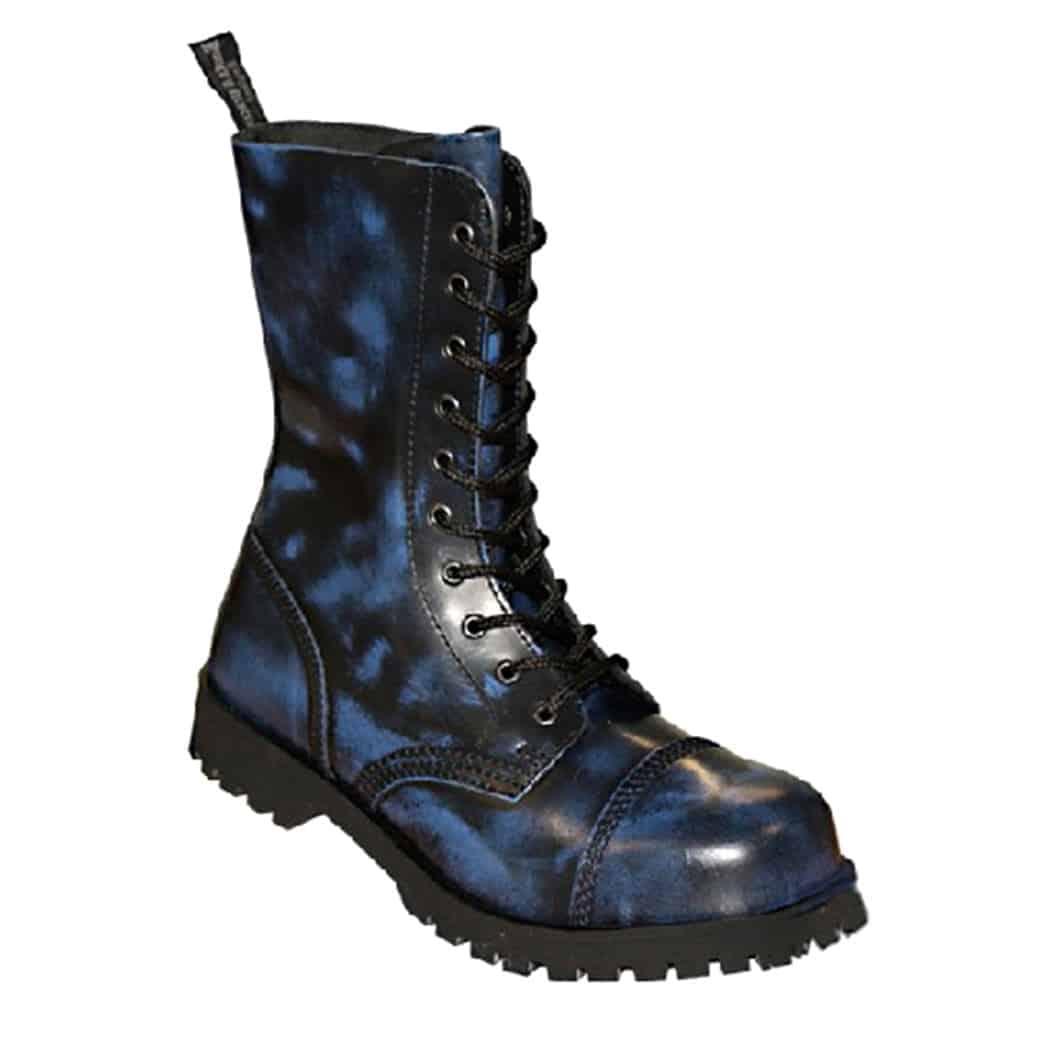 10-Loch Stiefel mit Stahlkappe und geschraubter Sohle.