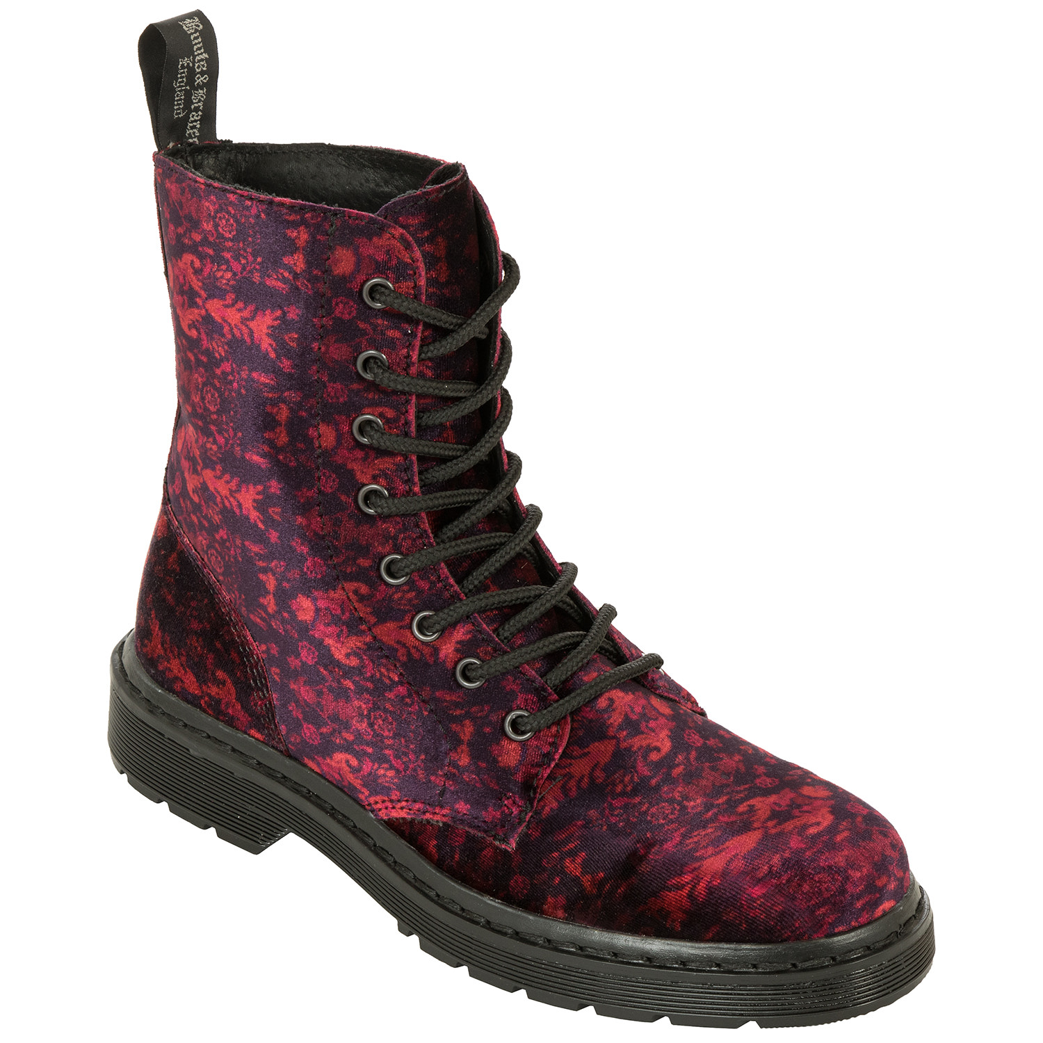 Klassischer 8-Loch Stiefel mit edler Samtoberfläche und leichter Kunststoff-Sohle. Ohne Stahlkappe und Quernaht. Lichtbeeinflusster Samtlook: Aus unterschiedlichen Perspektive sieht der Stiefel immer ein wenig anders aus. Angenehmer Tragekomfort aufgrund des geringen Gewichtes.