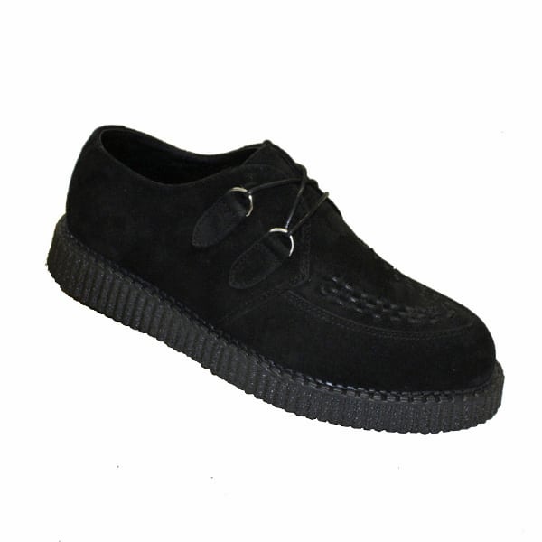 Wildleder-Creeper im Rockabilly Retro Look, mit D-Ringen und typischem Flechtmuster.