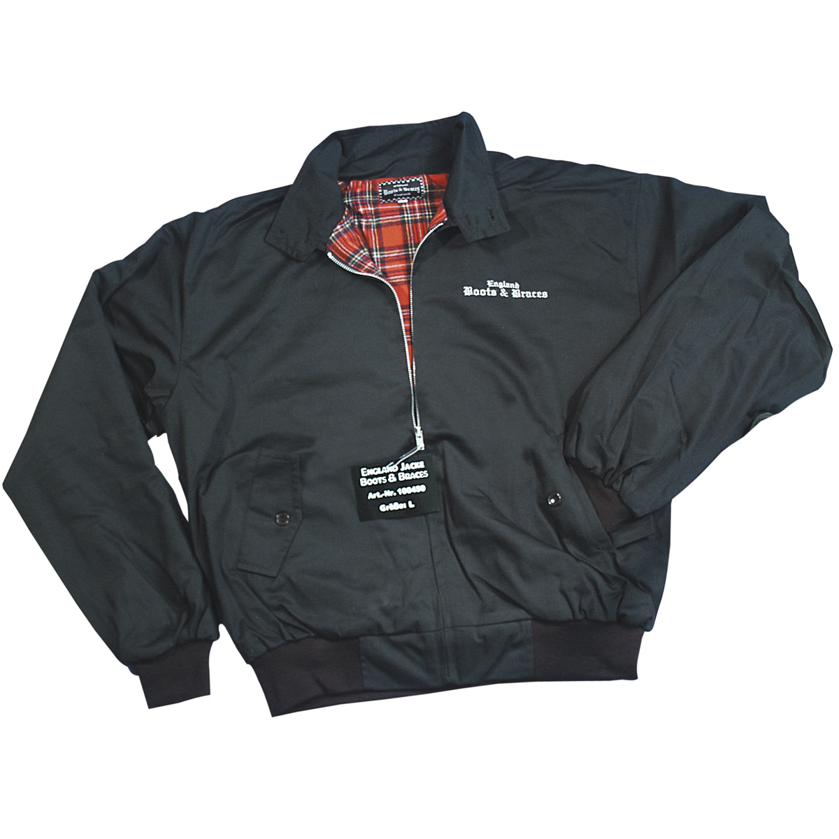 Jacke mit kariertem Innenfutter und zwei Taschen. Mit aufwändiger Stickerei an Brust und Rücken.