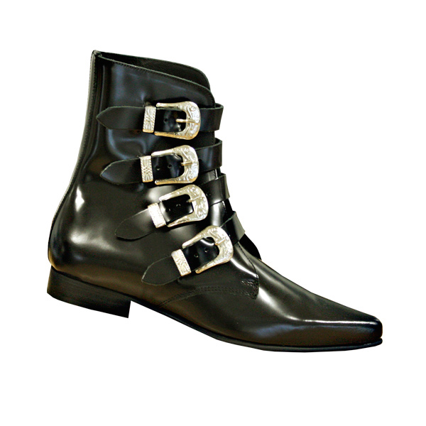 Klassische, hohe Pikes aus Glattleder mit vier auffälligen, silberfarbenen Schließen. Ohne Reißverschluß.