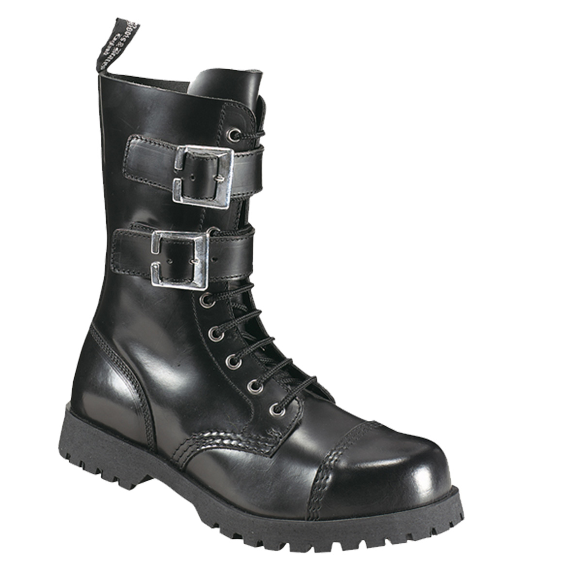 Robuster 10-Loch Stiefel aus Leder mit zwei Schnallen.