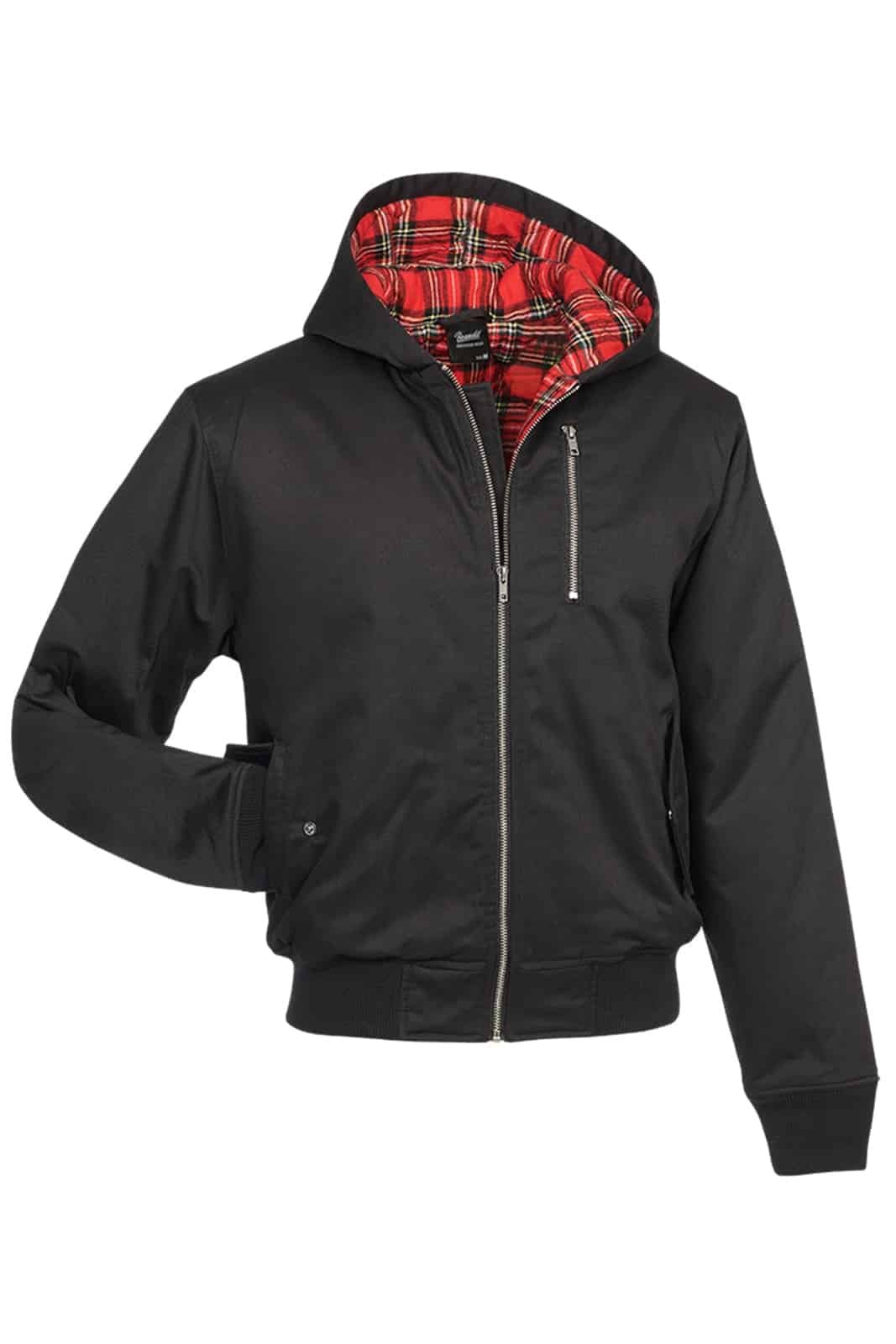 Klassischer Blouson mit zwei Einschub- und einer Reißverschluß-Brusttasche, Stehkragen, Frontreißverschluß und wattiertem kariertem Winter-Innenfutter. Zusätzlich mit warmer Kapuze.