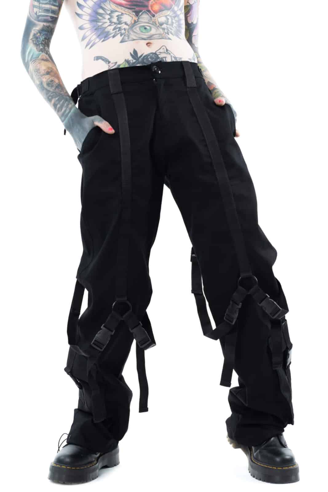 Mit Knopf, Reißverschluß und Gürtelschlaufen. Die Beinabschlüsse sind mit Kordeln versehen.Beinlänge 34 Inch