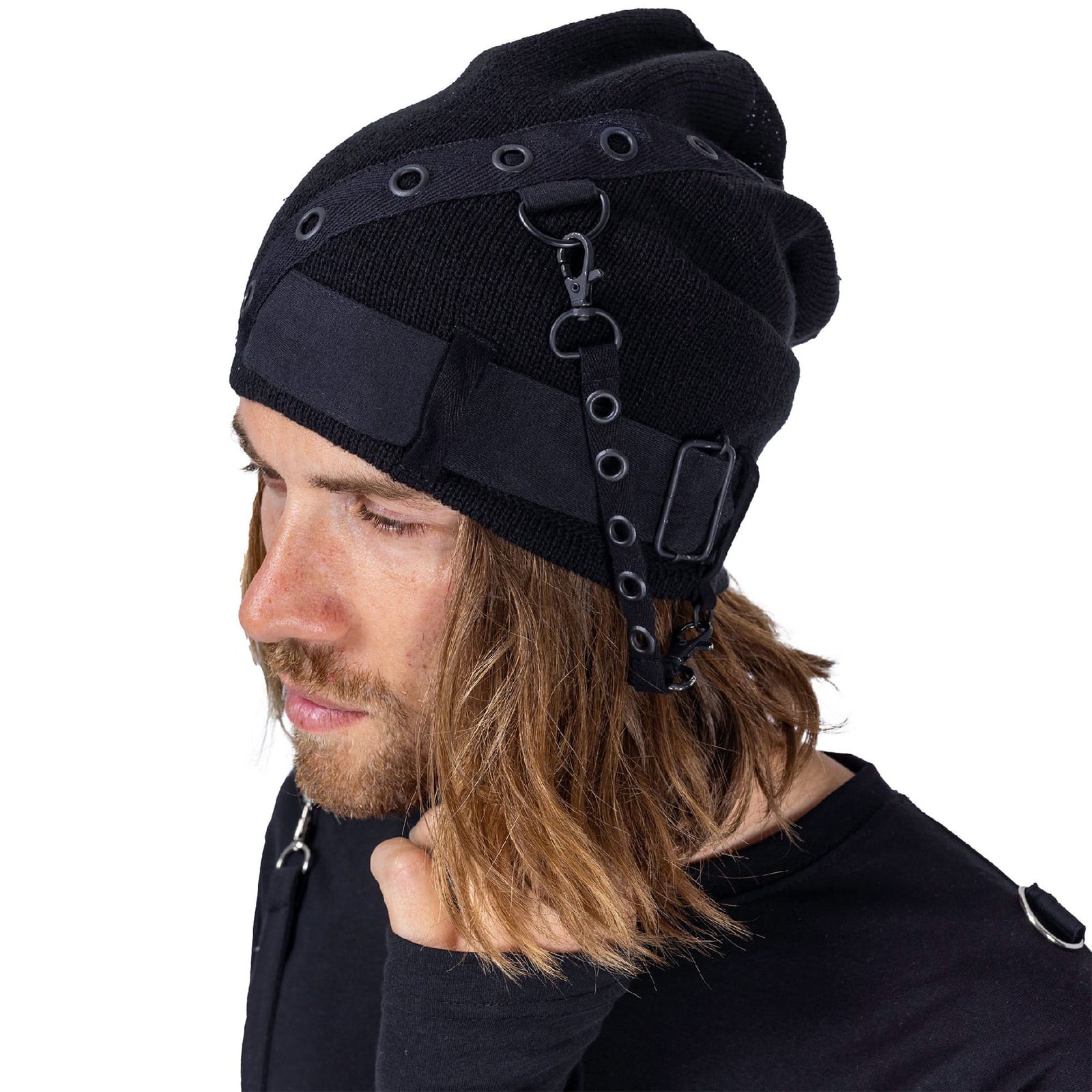 Diese markante Beanie vereint urbanen Streetstyle mit einem klaren Industrial- und Military-Einfluss. Die Mütze „Combat“ besticht durch ihr tiefschwarzes Design, robuste Details und aufgenähte Stoffelemente mit Ösen, Riemen und Karabinerhaken, die ihr einen rebellischen, technischen Look verleihen. Perfekt für alle, die ihren Stil bewusst kantig, alternativ und ausdrucksstark halten möchten.