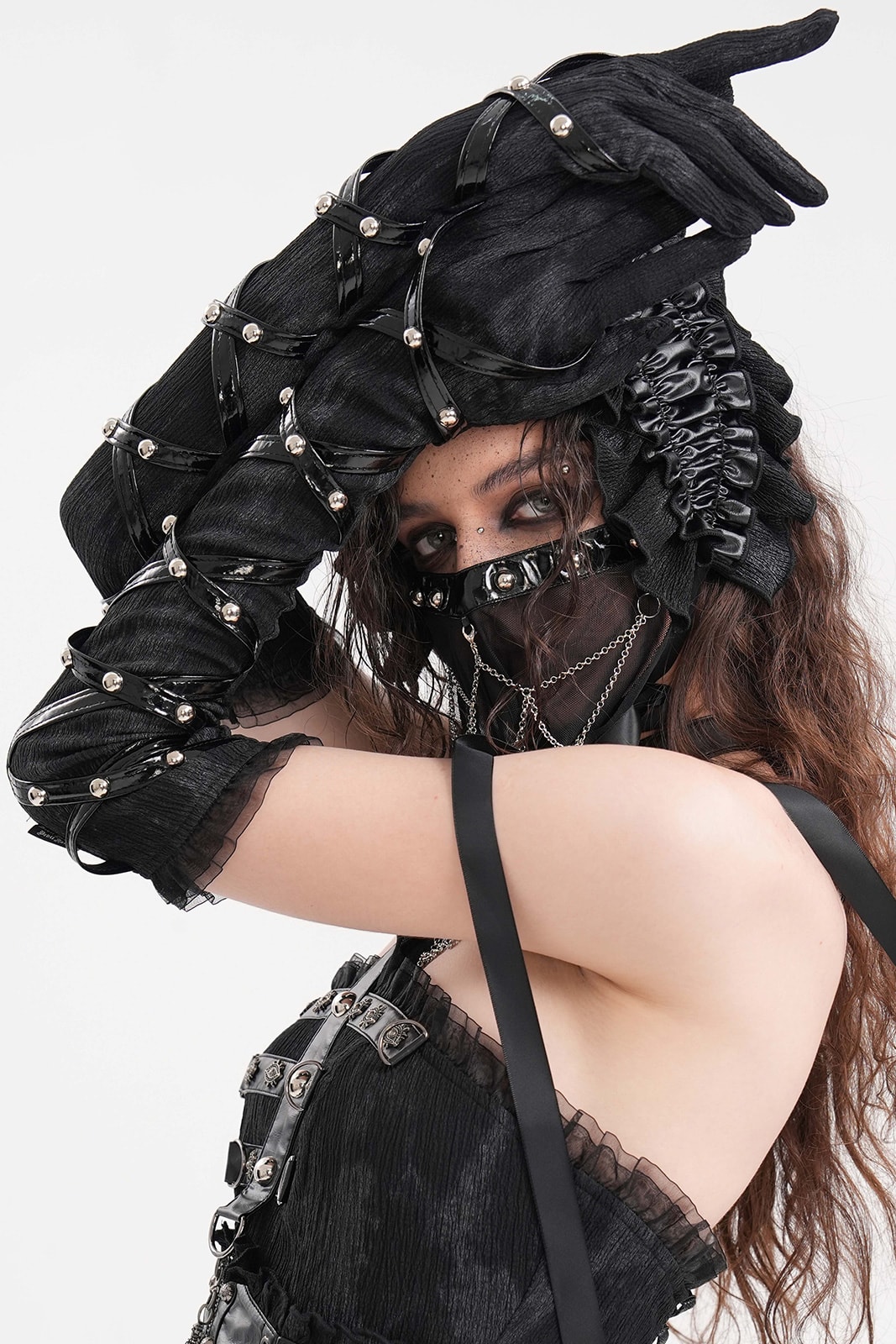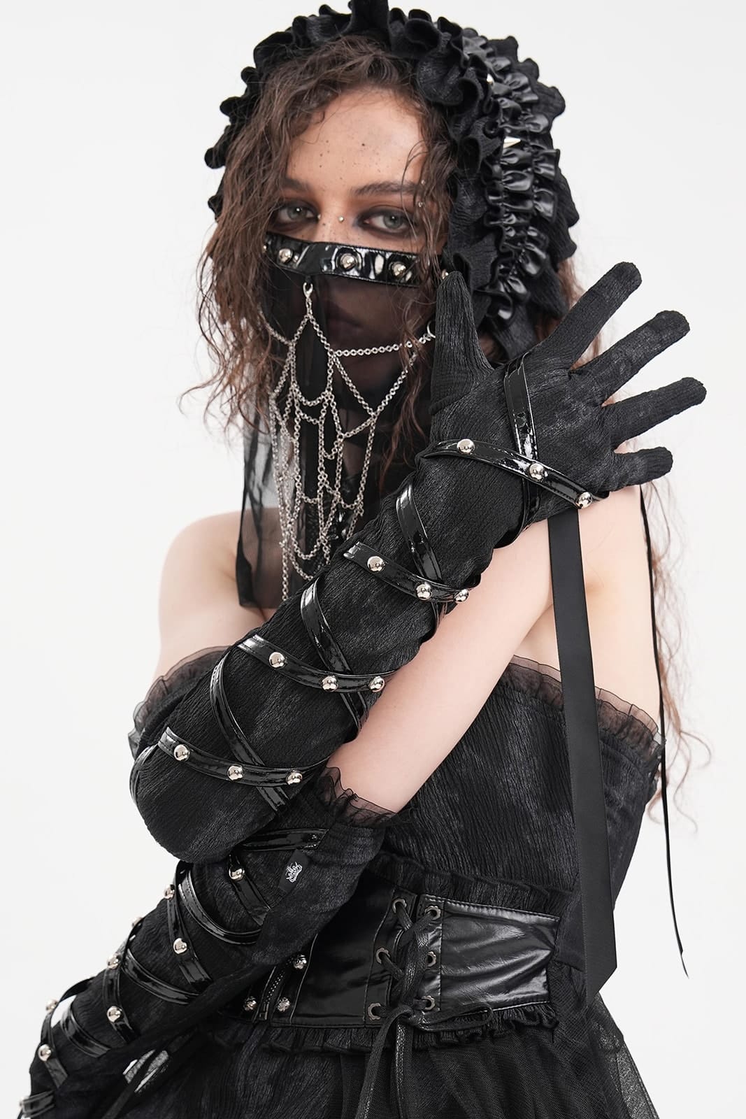 Gothic-Handschuhe bis zum Ellenbogen mit Riemendetail aus Kunstleder im Glanz-Look.
