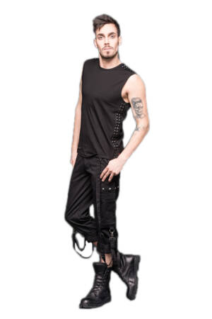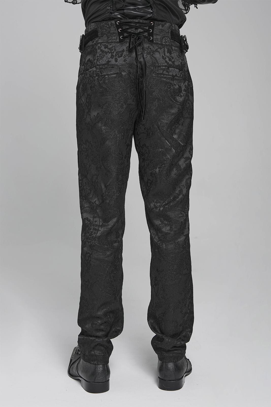 Diese viktorianisch inspirierte Gothic-Hose vereint aristokratische Eleganz mit düsterer Symbolik. Das edle Jacquard-Satin trifft auf Samt-Details und filigrane Metallornamente – perfekt für einen stilvollen Auftritt zwischen Ballsaal und Schattenwelt.