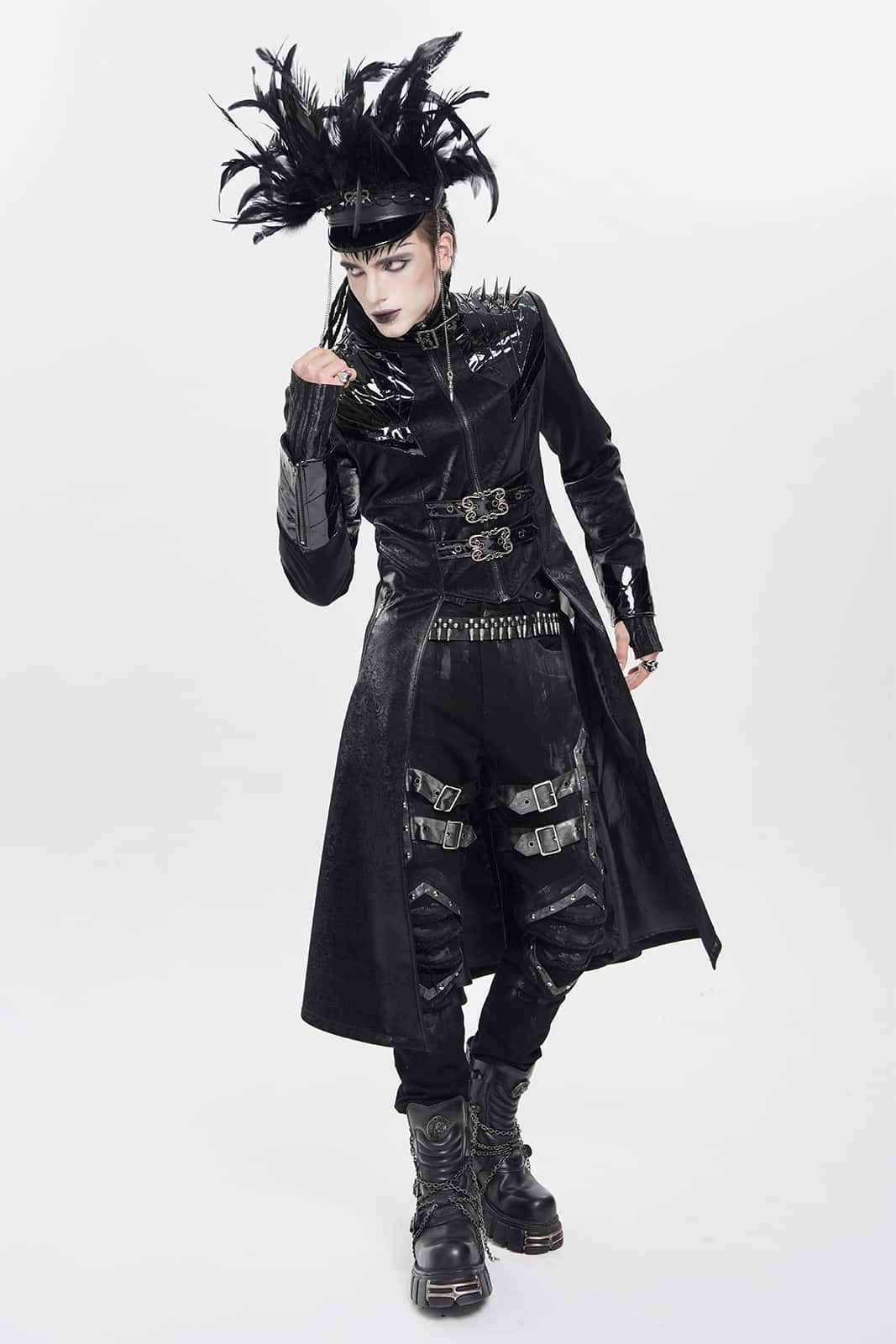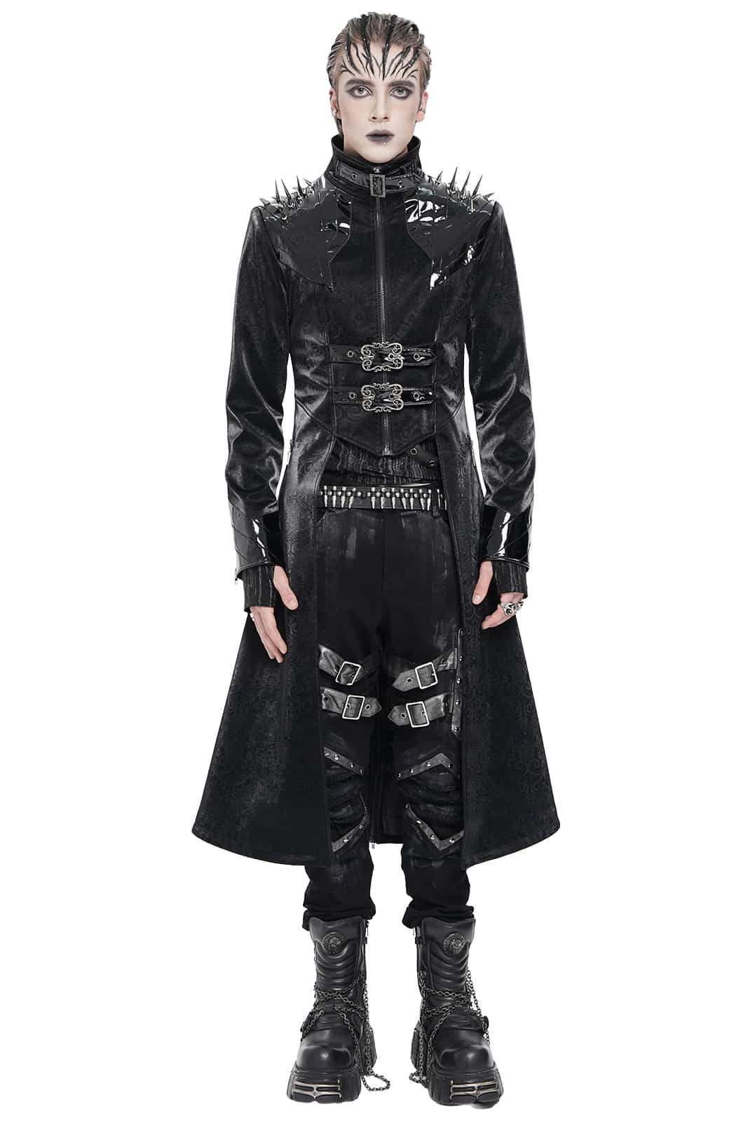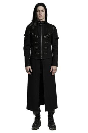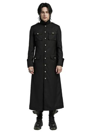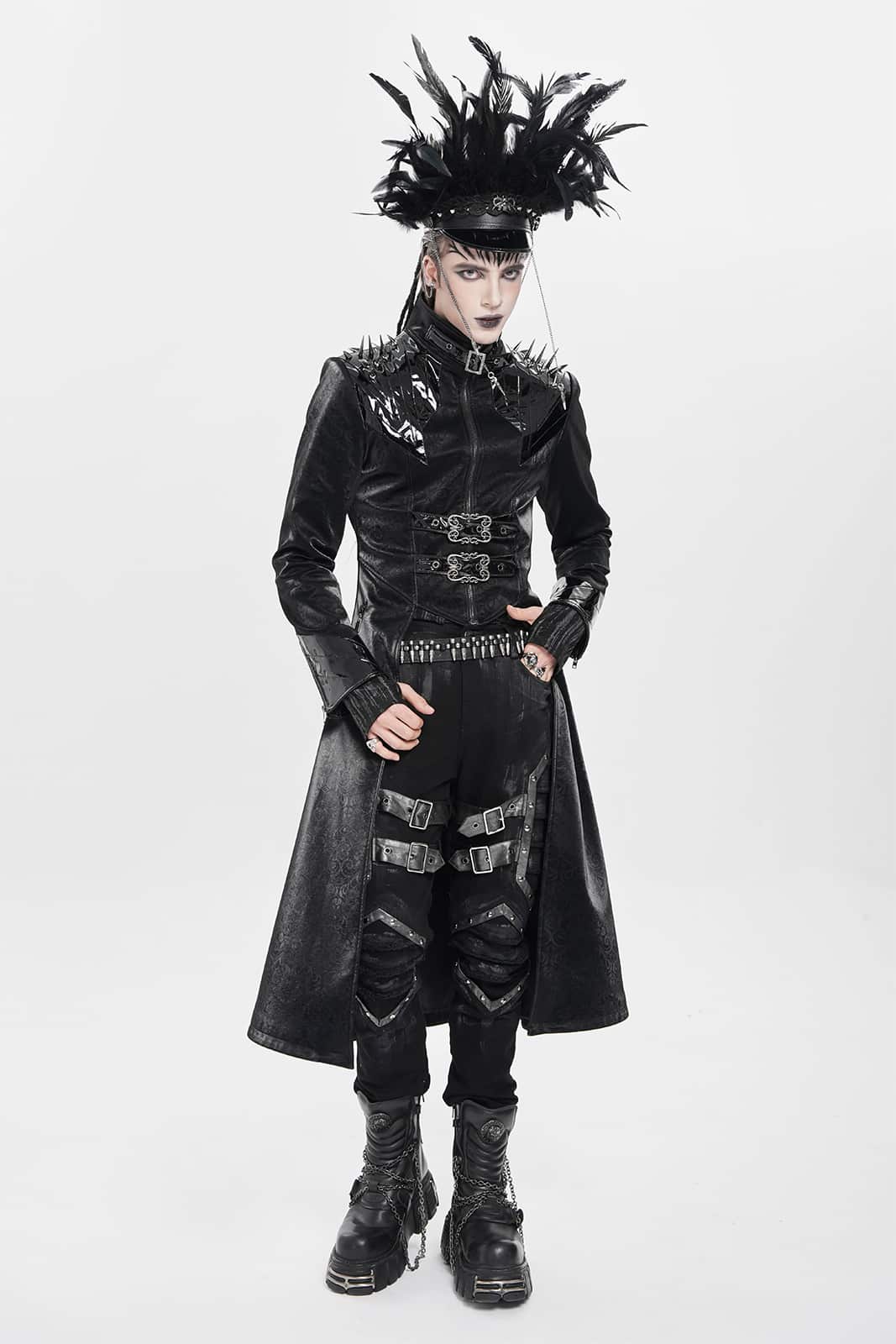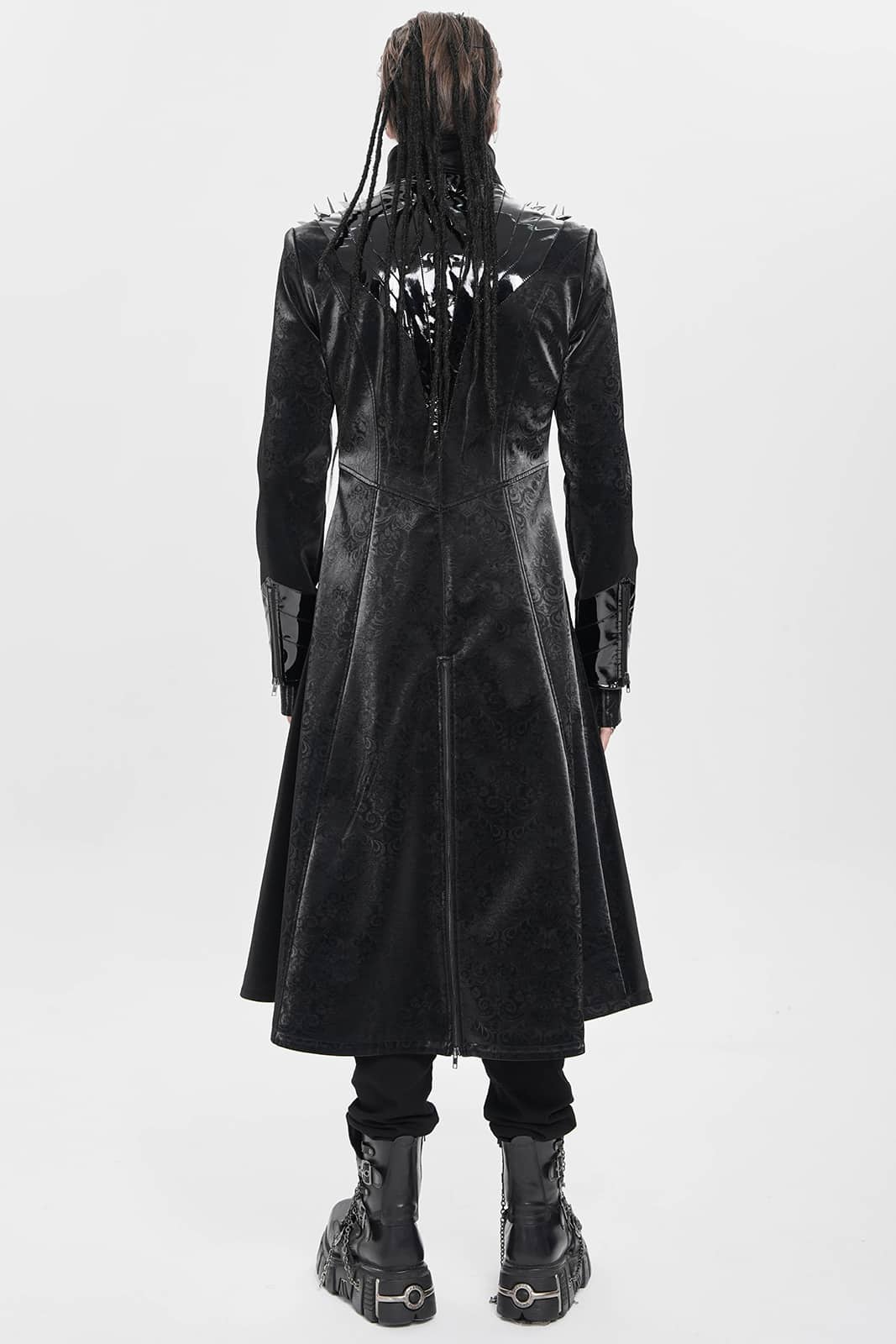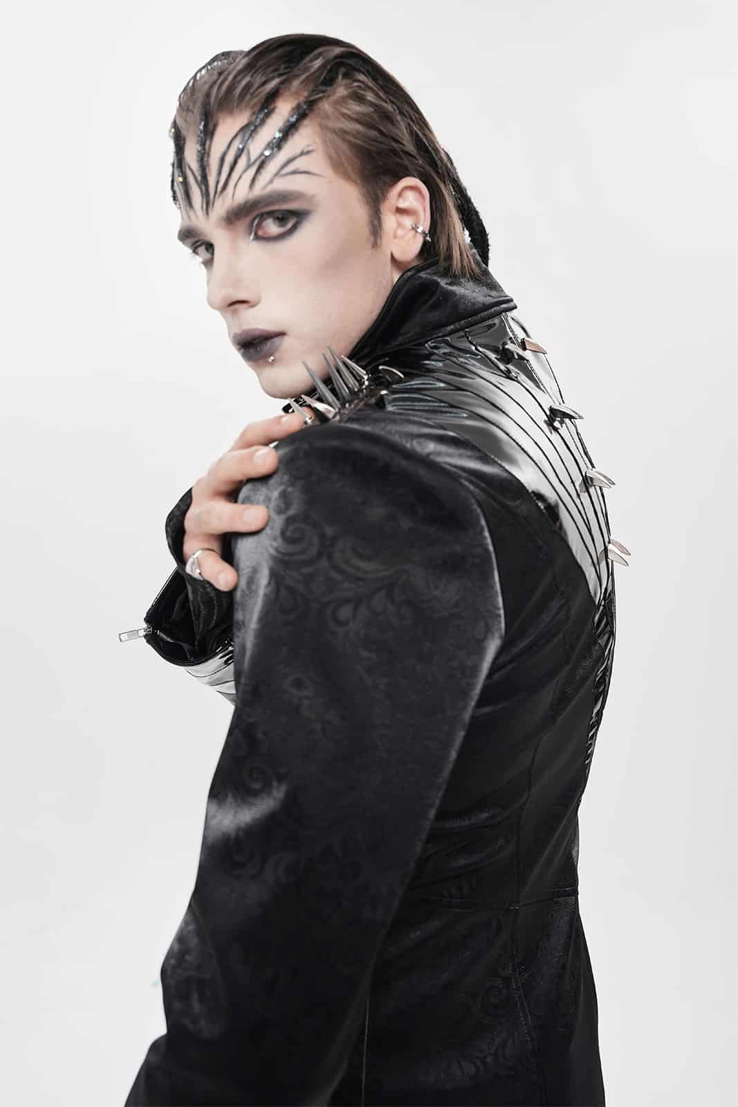 Ein Mantel wie aus der Gruft eines dunklen Fürsten: Der „Vampire Commander“-Coat verbindet opulente Brokat-Optik mit düsteren Details und martialischer Silhouette. Die glänzenden Kunstleder-Akzente und Schulterspikes setzen kraftvolle Kontraste – ein Statement für alle Nachtwesen mit Stil.