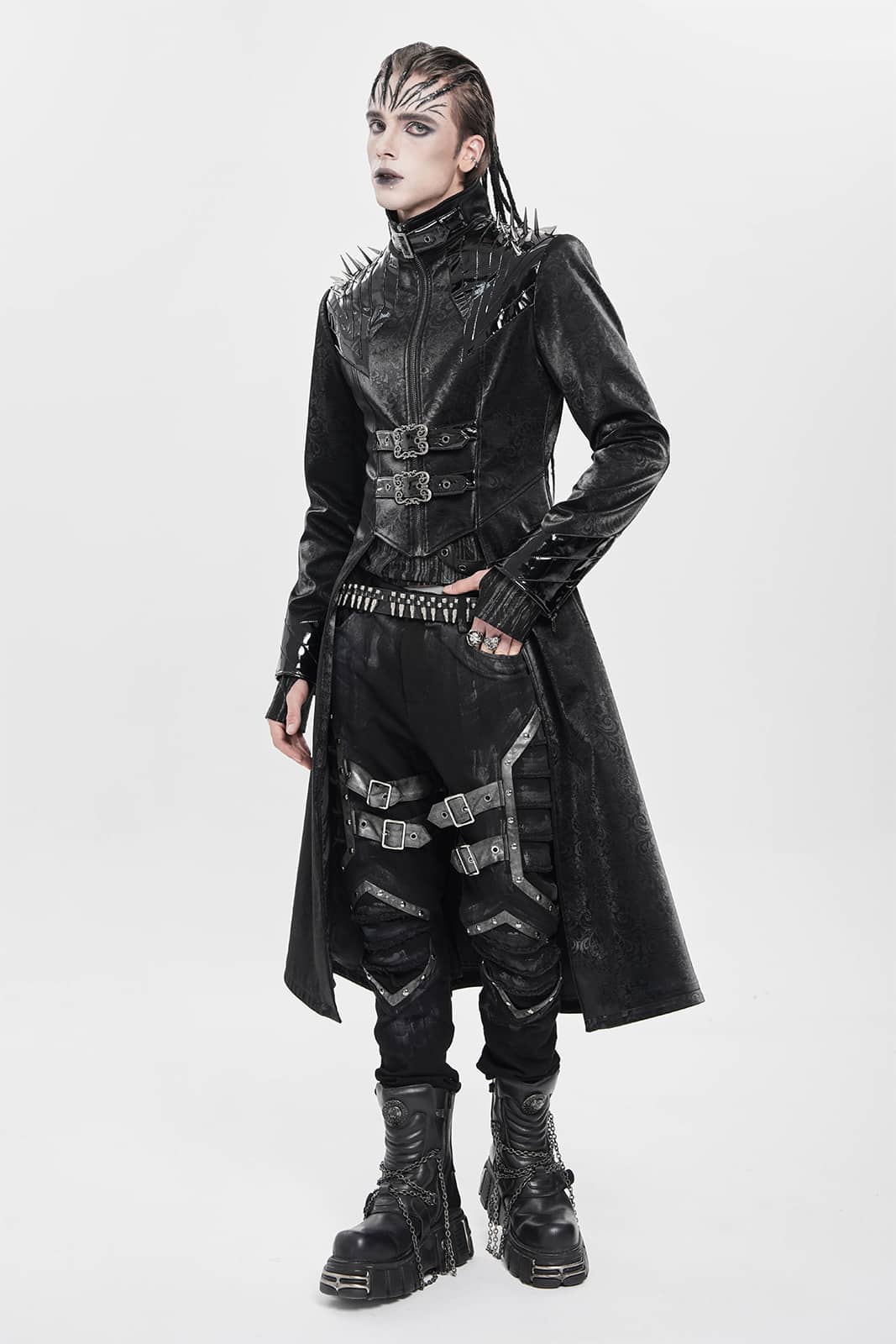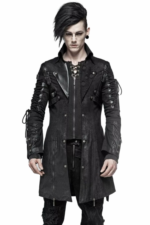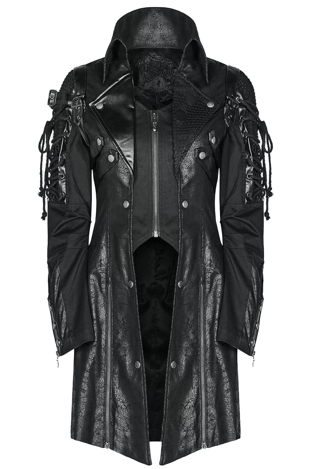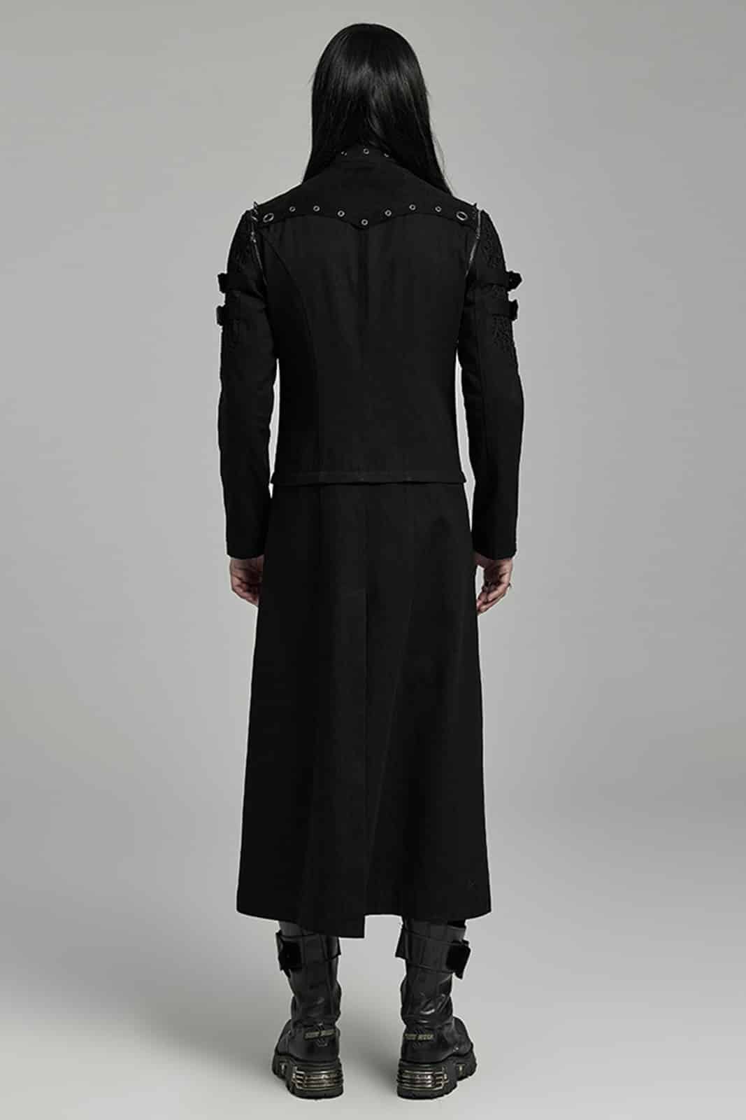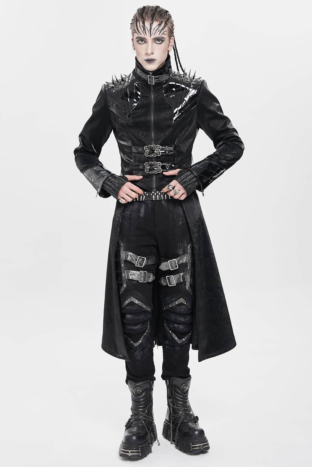 Ein Mantel wie aus der Gruft eines dunklen Fürsten: Der „Vampire Commander“-Coat verbindet opulente Brokat-Optik mit düsteren Details und martialischer Silhouette. Die glänzenden Kunstleder-Akzente und Schulterspikes setzen kraftvolle Kontraste – ein Statement für alle Nachtwesen mit Stil.