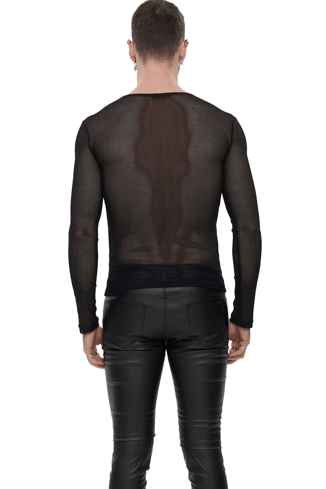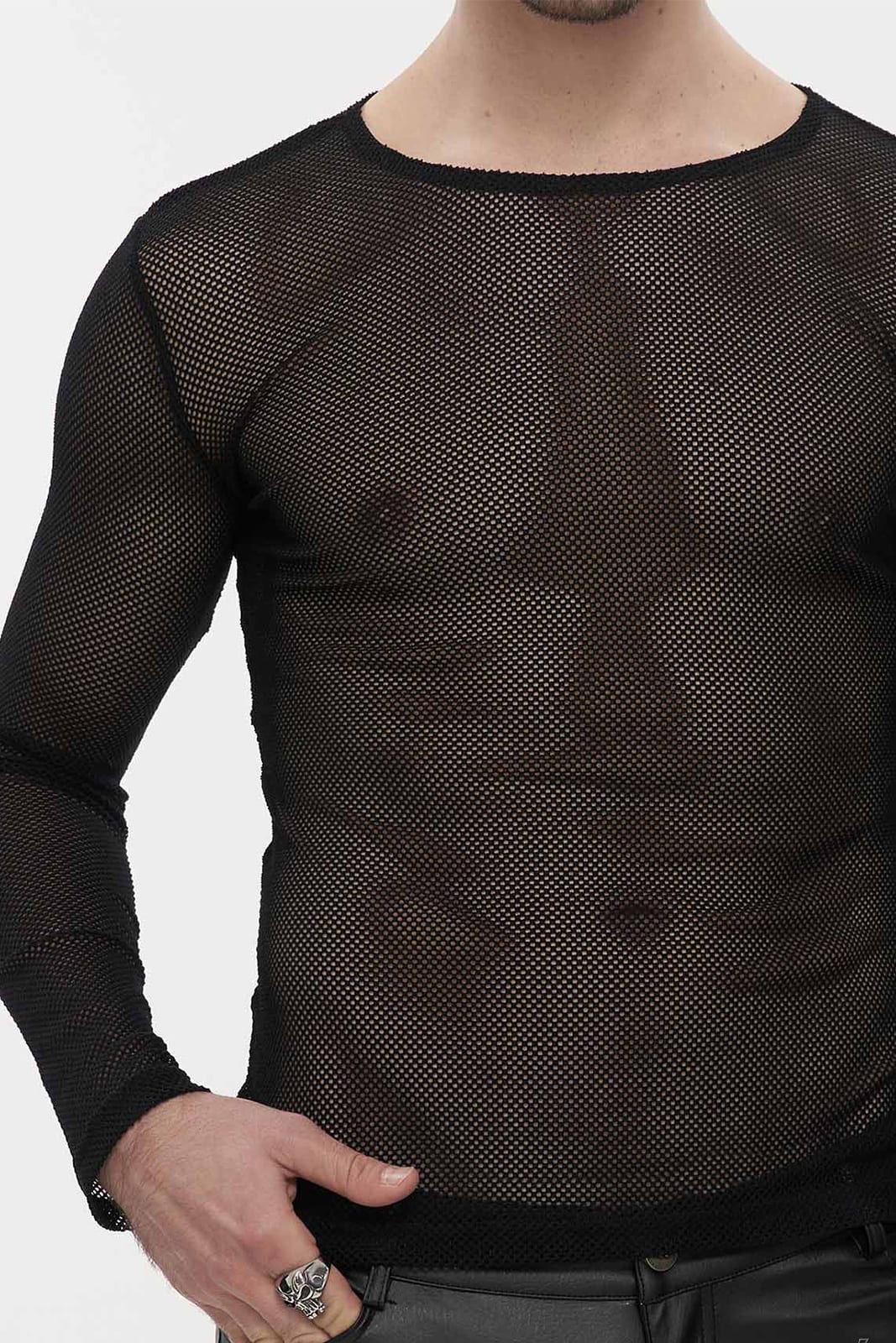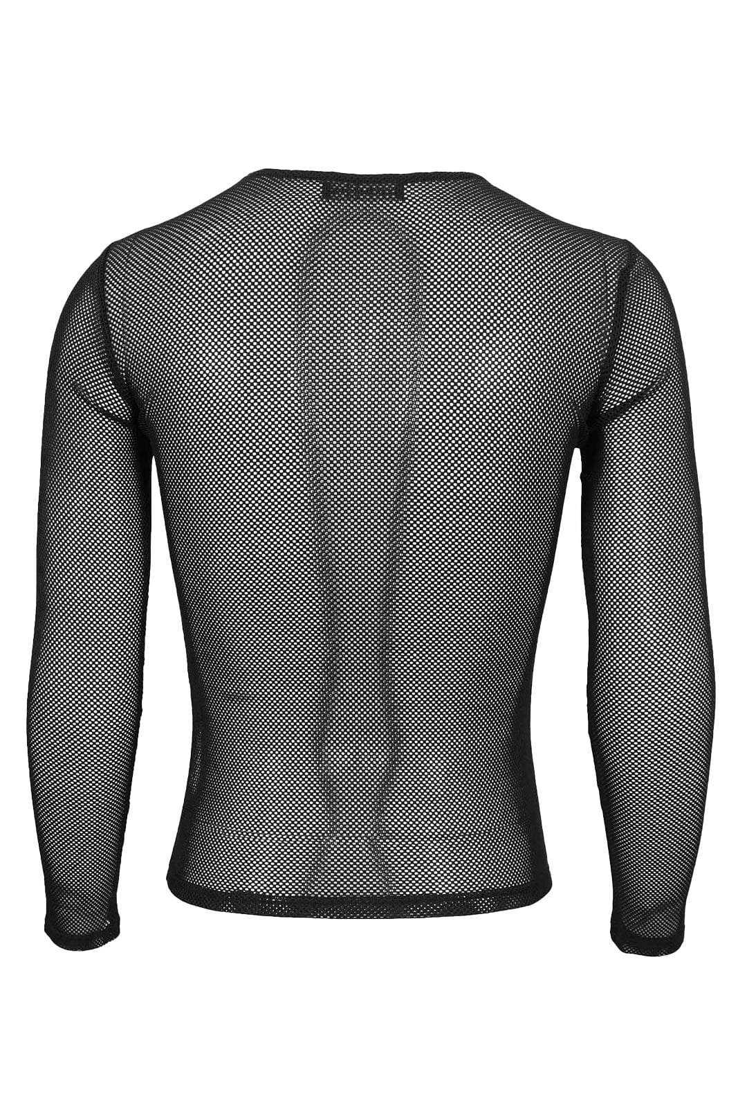 Langärmeliges schwarzes Netz-Top für Herren das Solo oder in Kombination zum Schichten getragen werden kann. Mit seinen langen Ärmeln und dem Rundhalsausschnitt passt es zu allem und Jedem.