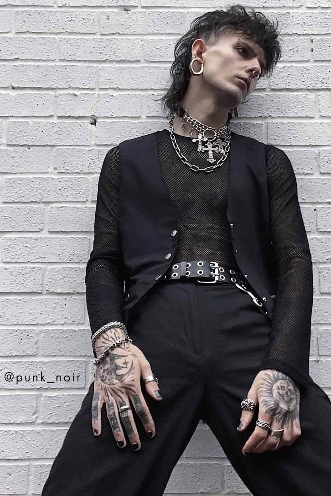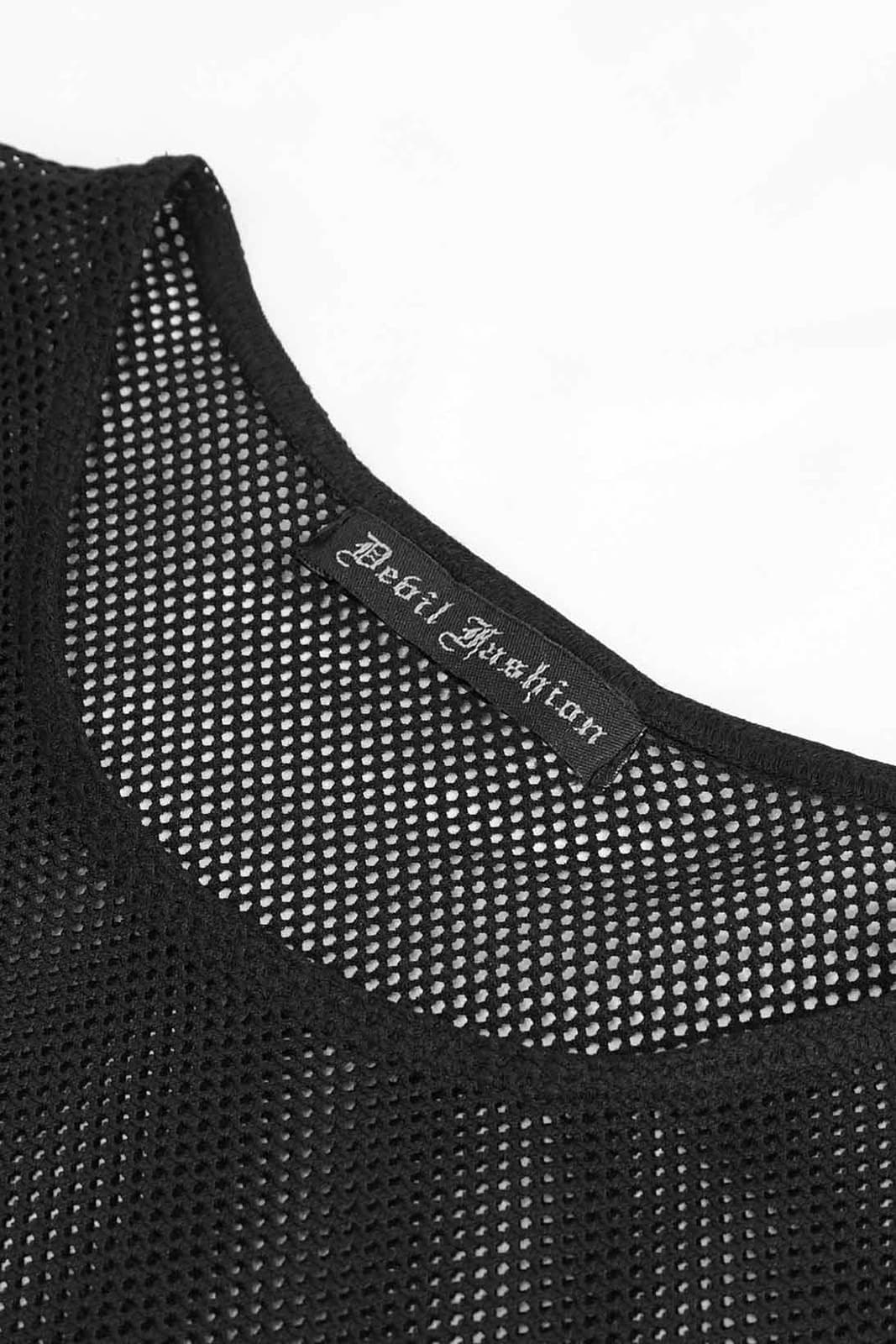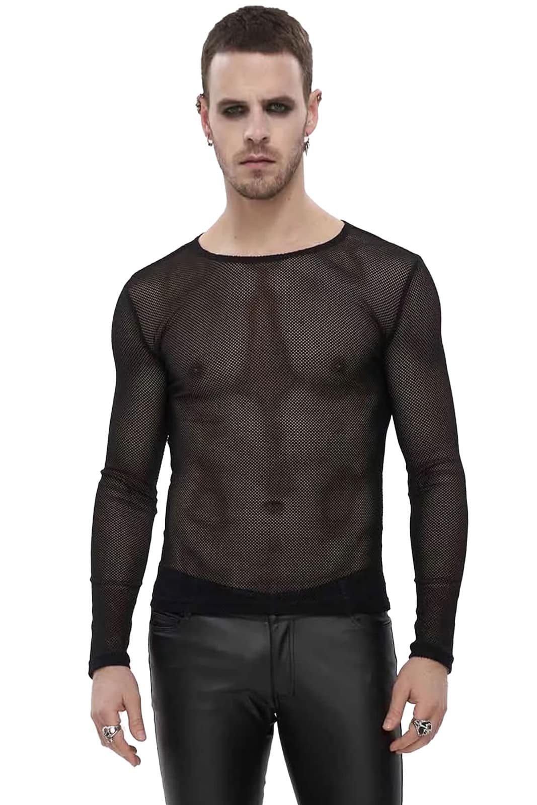Langärmeliges schwarzes Netz-Top für Herren das Solo oder in Kombination zum Schichten getragen werden kann. Mit seinen langen Ärmeln und dem Rundhalsausschnitt passt es zu allem und Jedem.