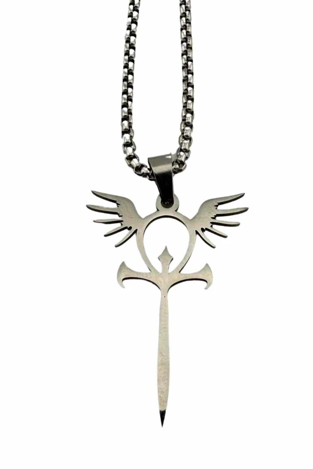 Halskette aus Edelstahl in Form eines Ankh mit Engels-Flügeln.