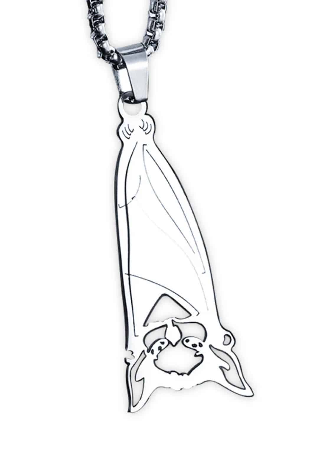 Halskette aus Edelstahl in Form einer auf dem Kopf hängenden Fledermaus.