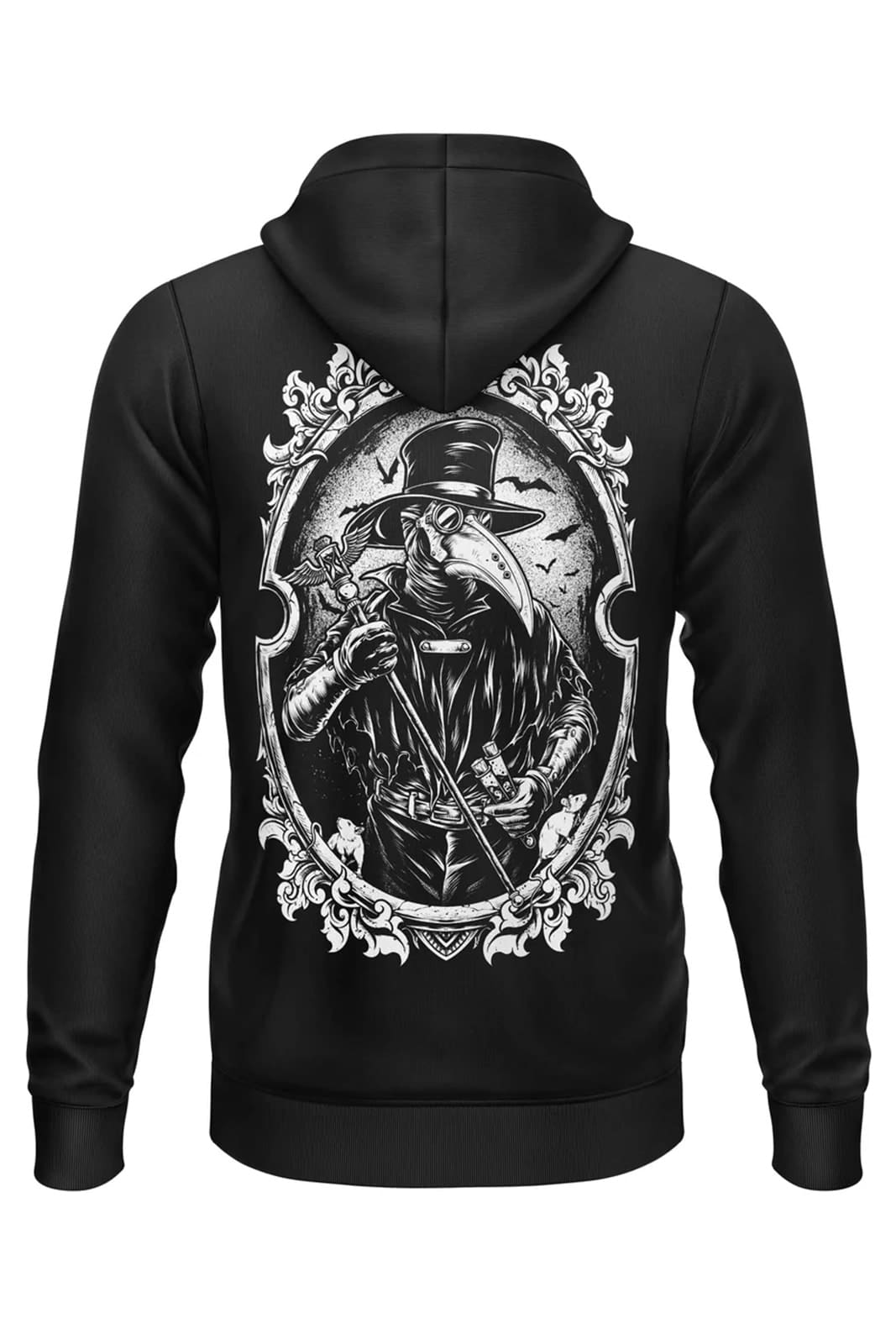 Gothic Pullover mit Känguruhtaschen und großer Kapuze mit Kordelzug.