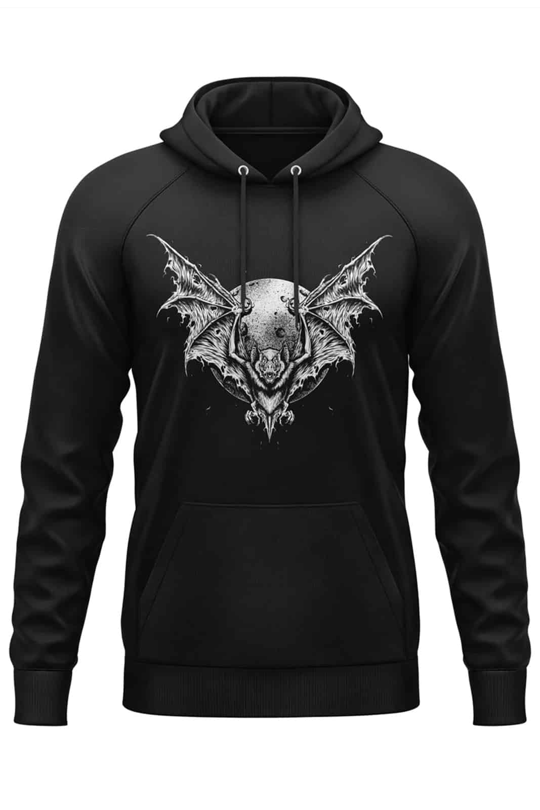 Die Vorderseite ist im hochwertigen Siebdruck-Verfahren mit einer Fledermaus-Grafik veredelt.