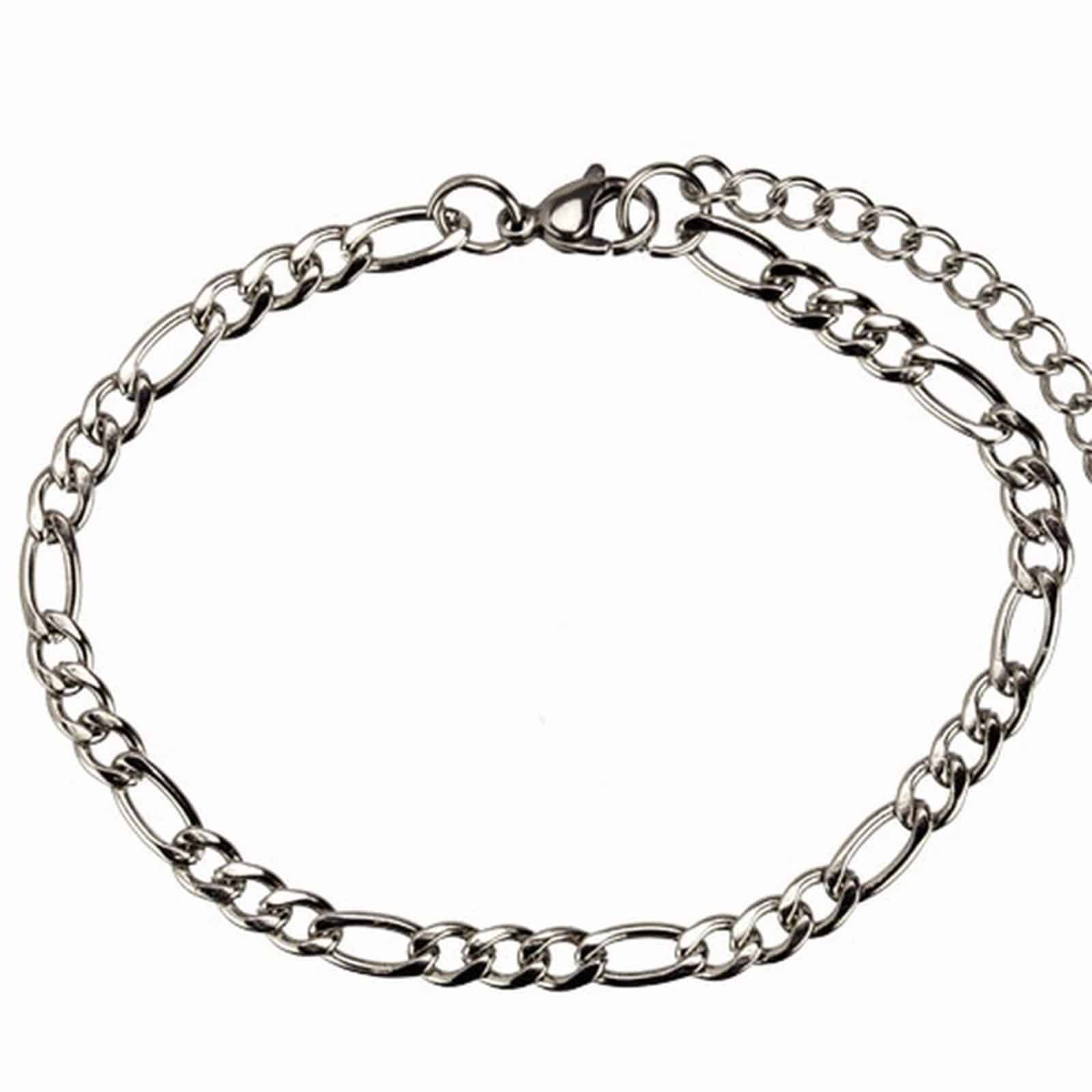 Edelstahl-Armband mit einem Durchmesser von ca. 4,5 mm und einer Länge von 20 cm plus 5 cm Verschlussreserve.