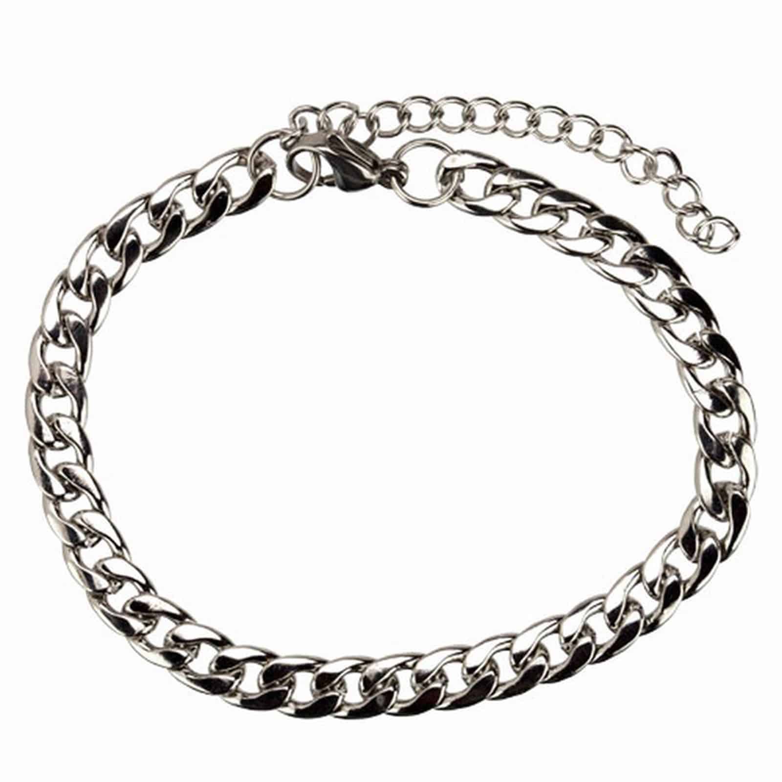 Edelstahl-Armband mit einem Durchmesser von ca. 6,7 mm und einer Länge von 20 cm plus 5 cm Verschlussreserve.