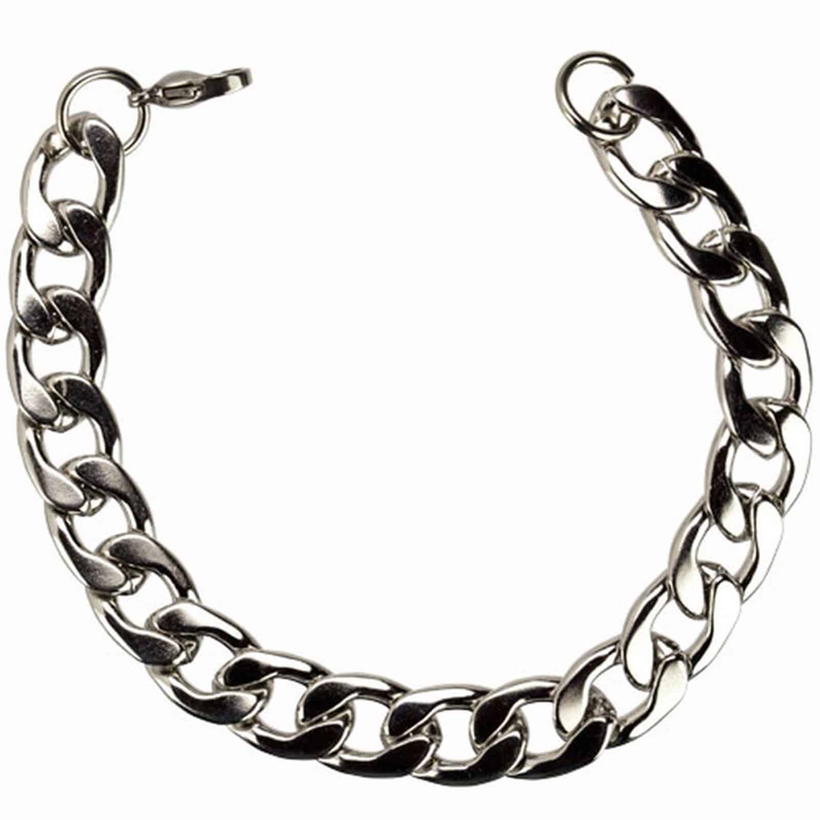 Edelstahl-Armband mit einem Durchmesser von ca. 12 mm und einer Länge von 20 cm plus 5 cm Verschlussreserve.