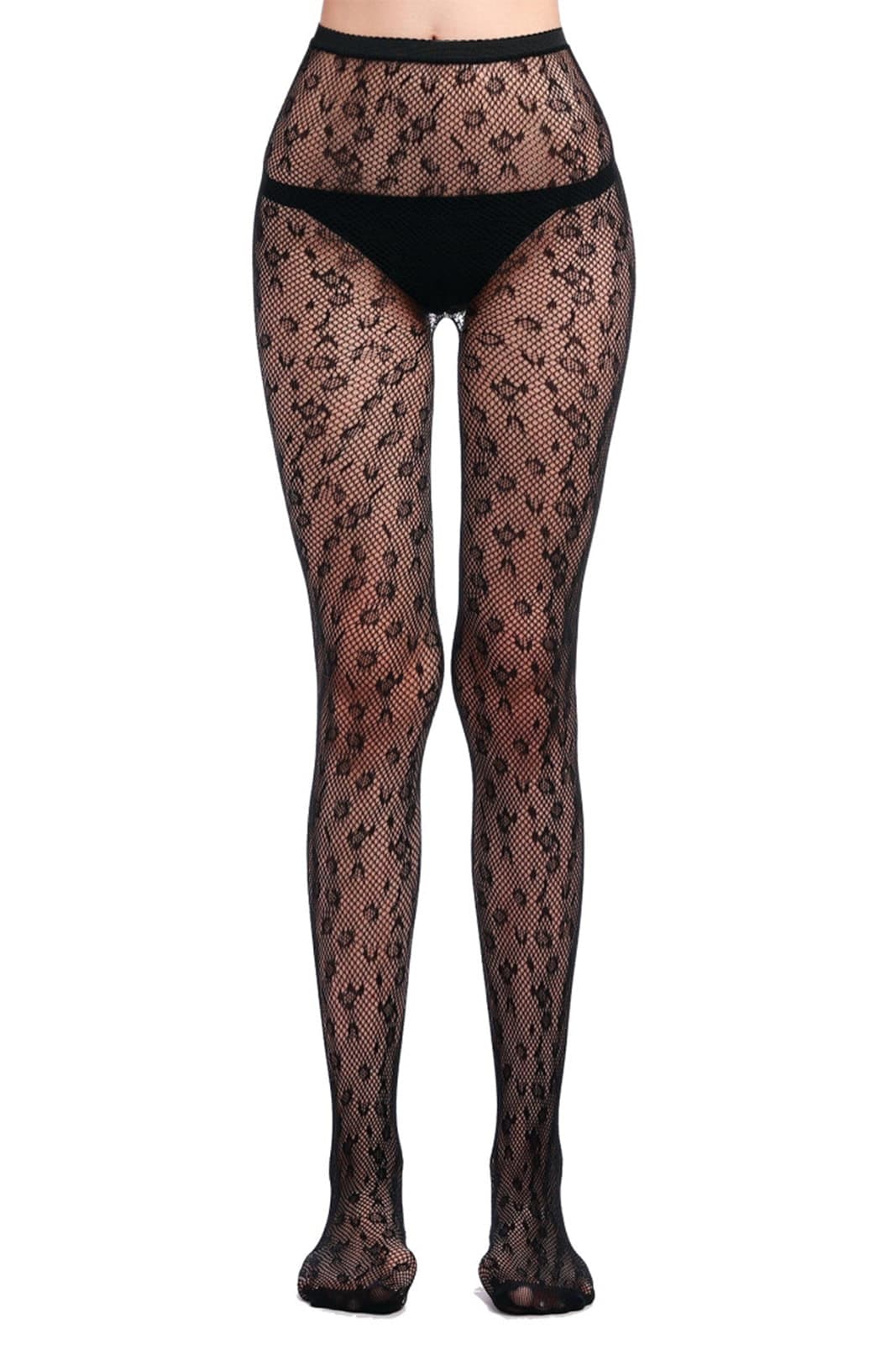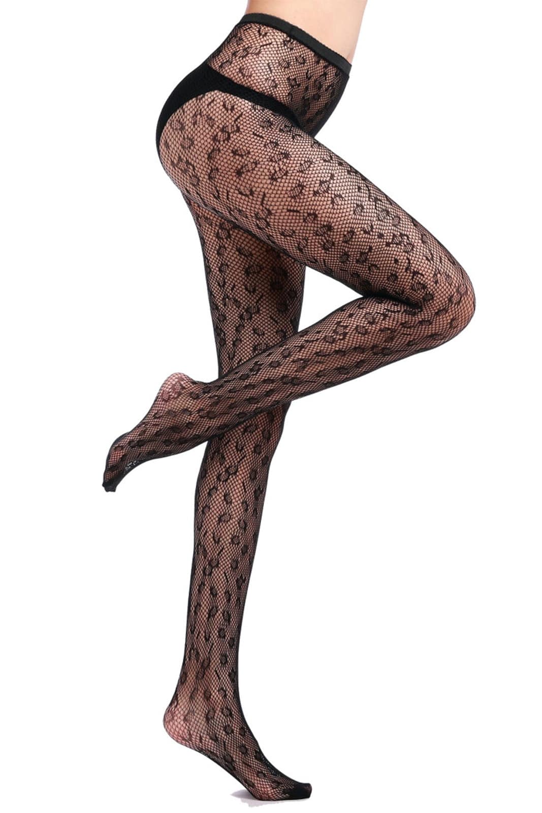 Schwarze Netzstrumpfhose mit Leo-Muster