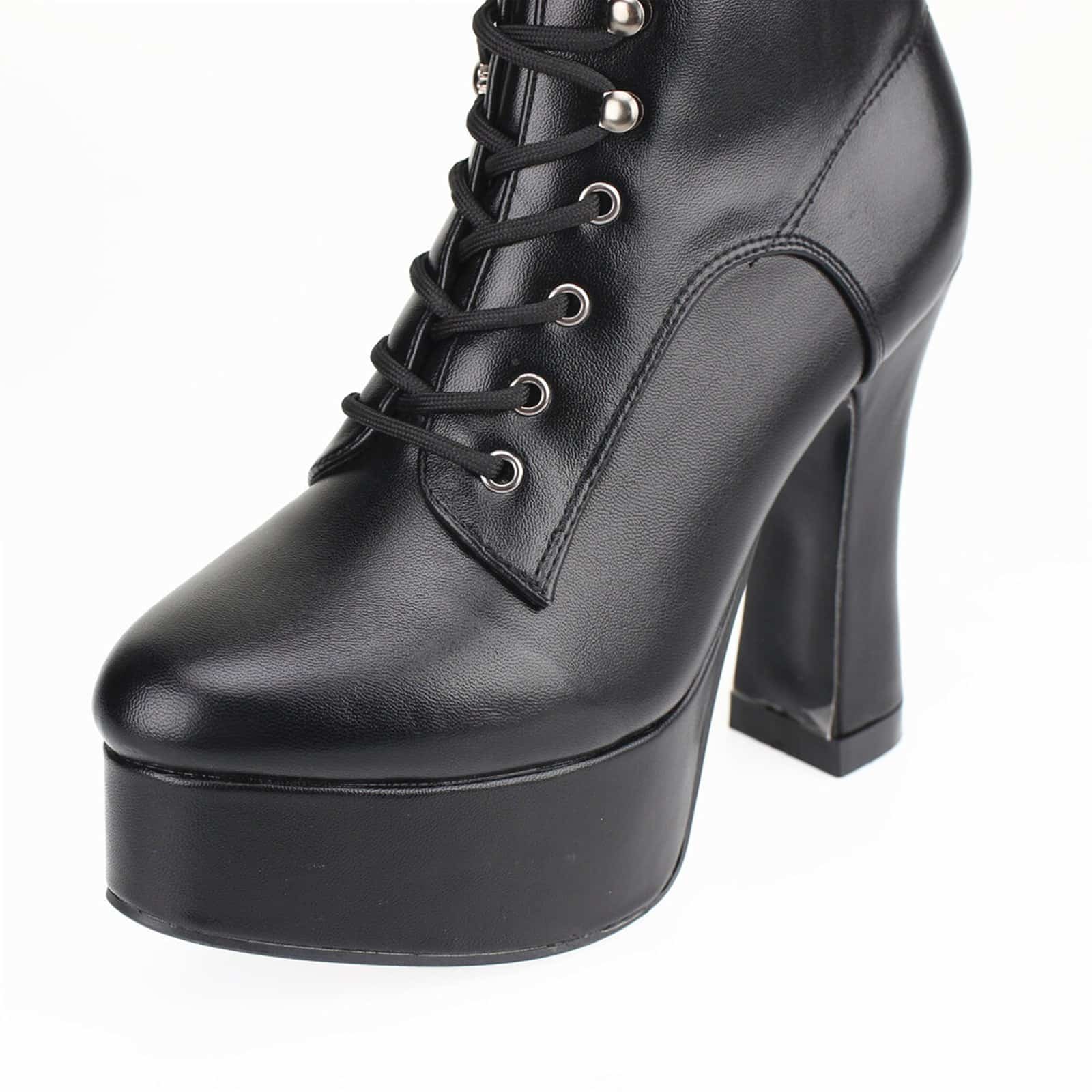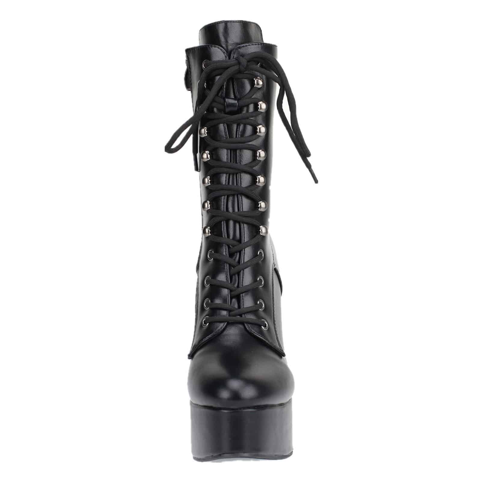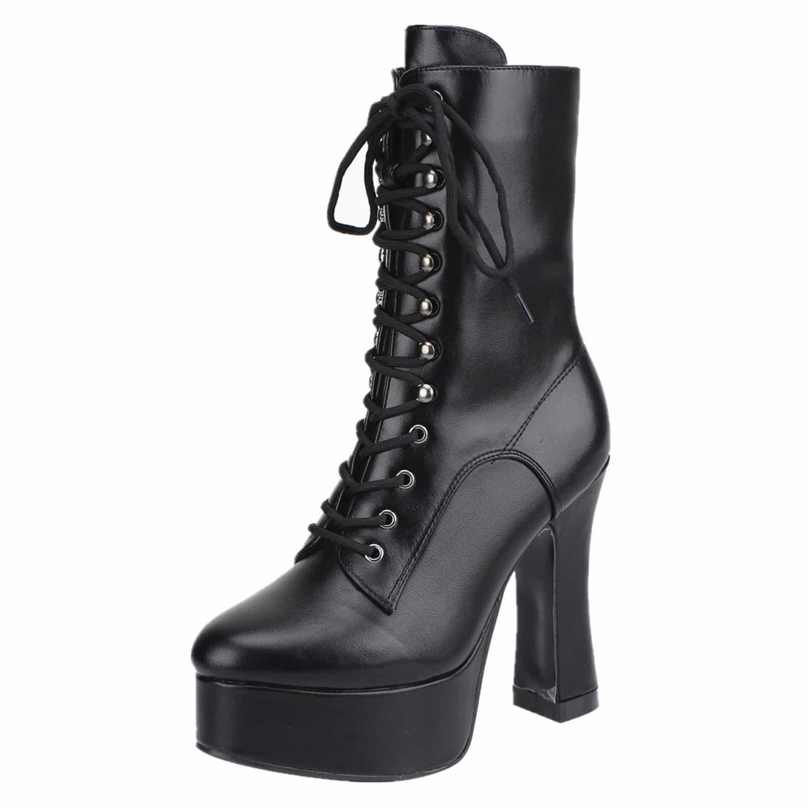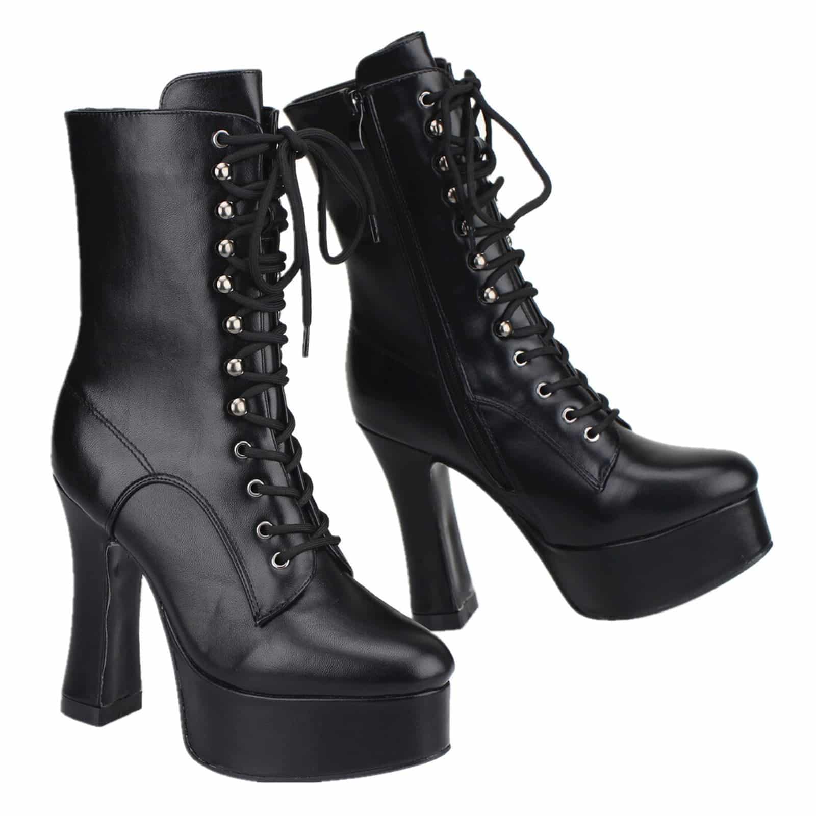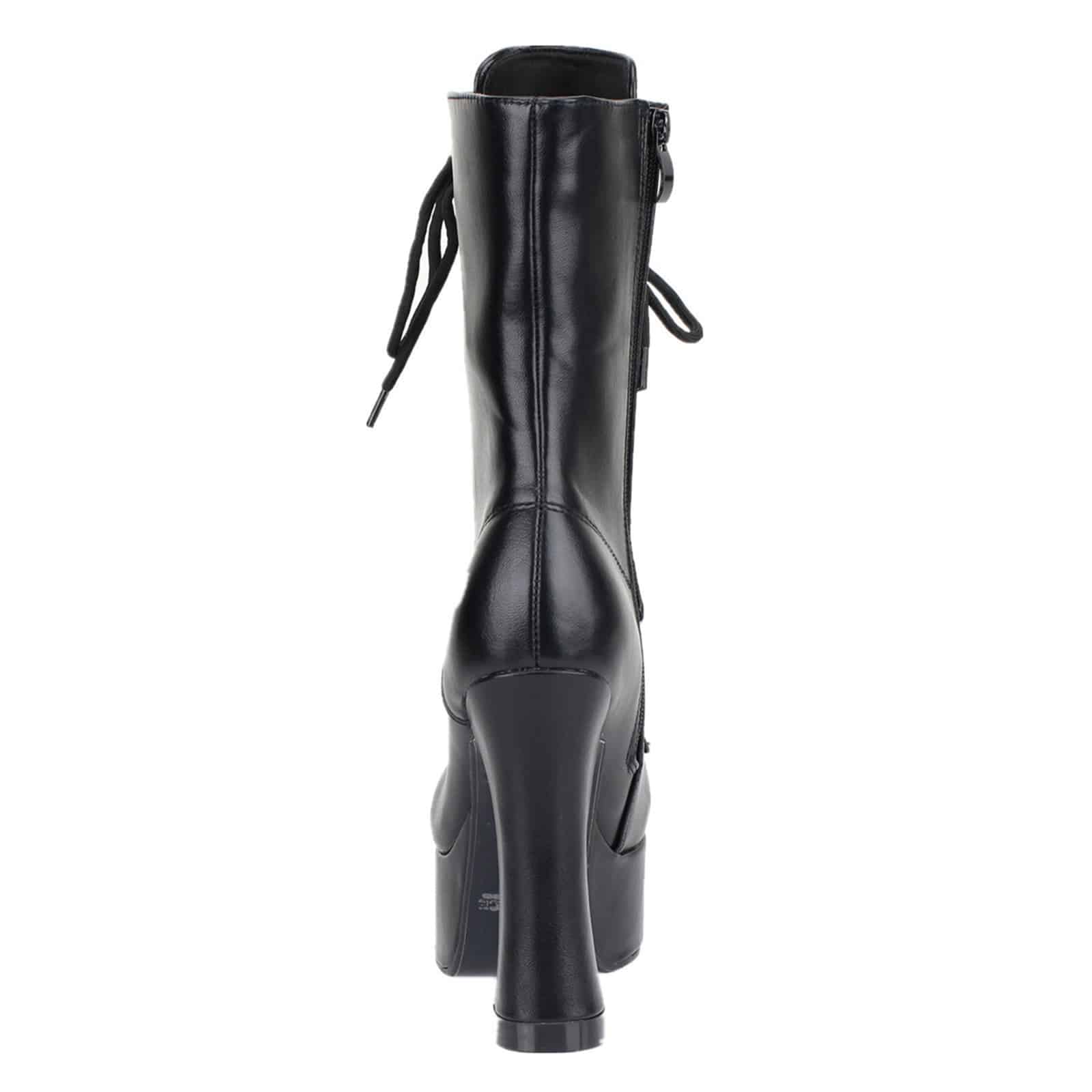 Extravagante Stiefelette mit Obermaterial aus Polyurethan und hoher Plateausohle aus elastischem Polymer (EVA).