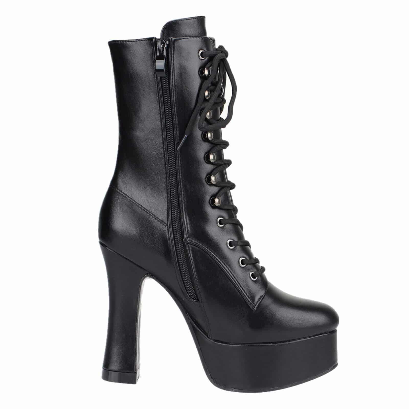 Mit seitlichem Reißverschluß und Schnürung an der Vorderseite.