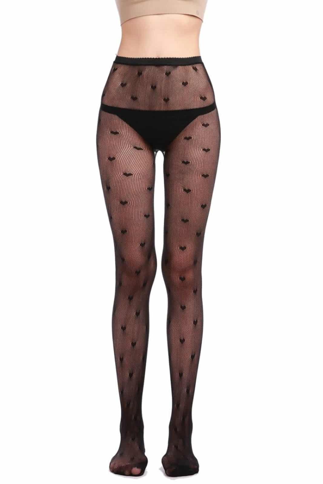 Strumpfhose aus feinmaschigem Netz für alle Gelegenheiten.Bedruckt mit kleinen schwarzen Fledermäusen.