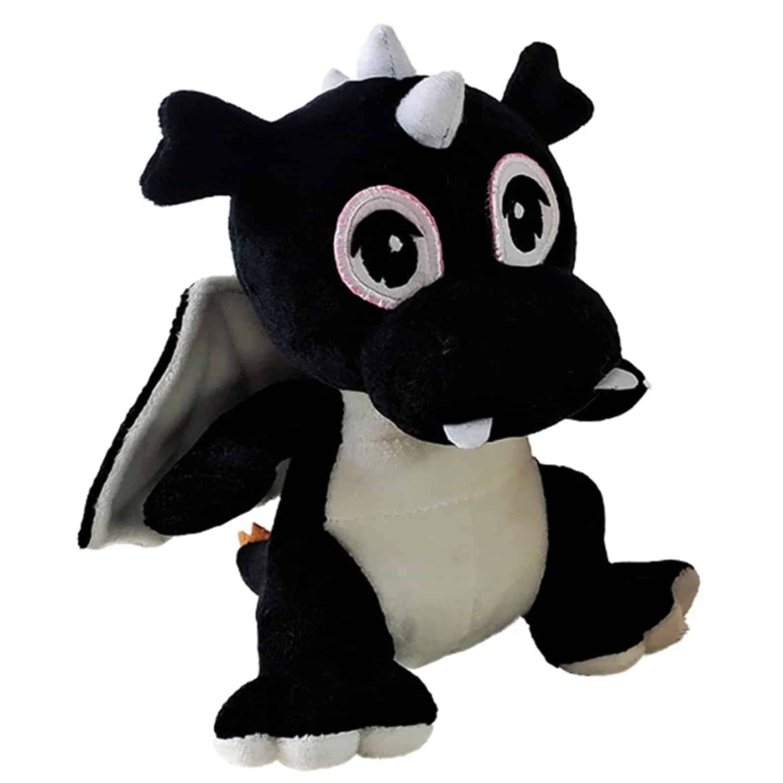 Süßer schwarz-weisser Drache mit weißem Bauch und weißer Unterseite der Flügel aus weichem Plüsch.