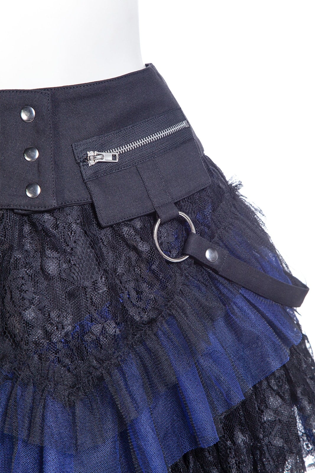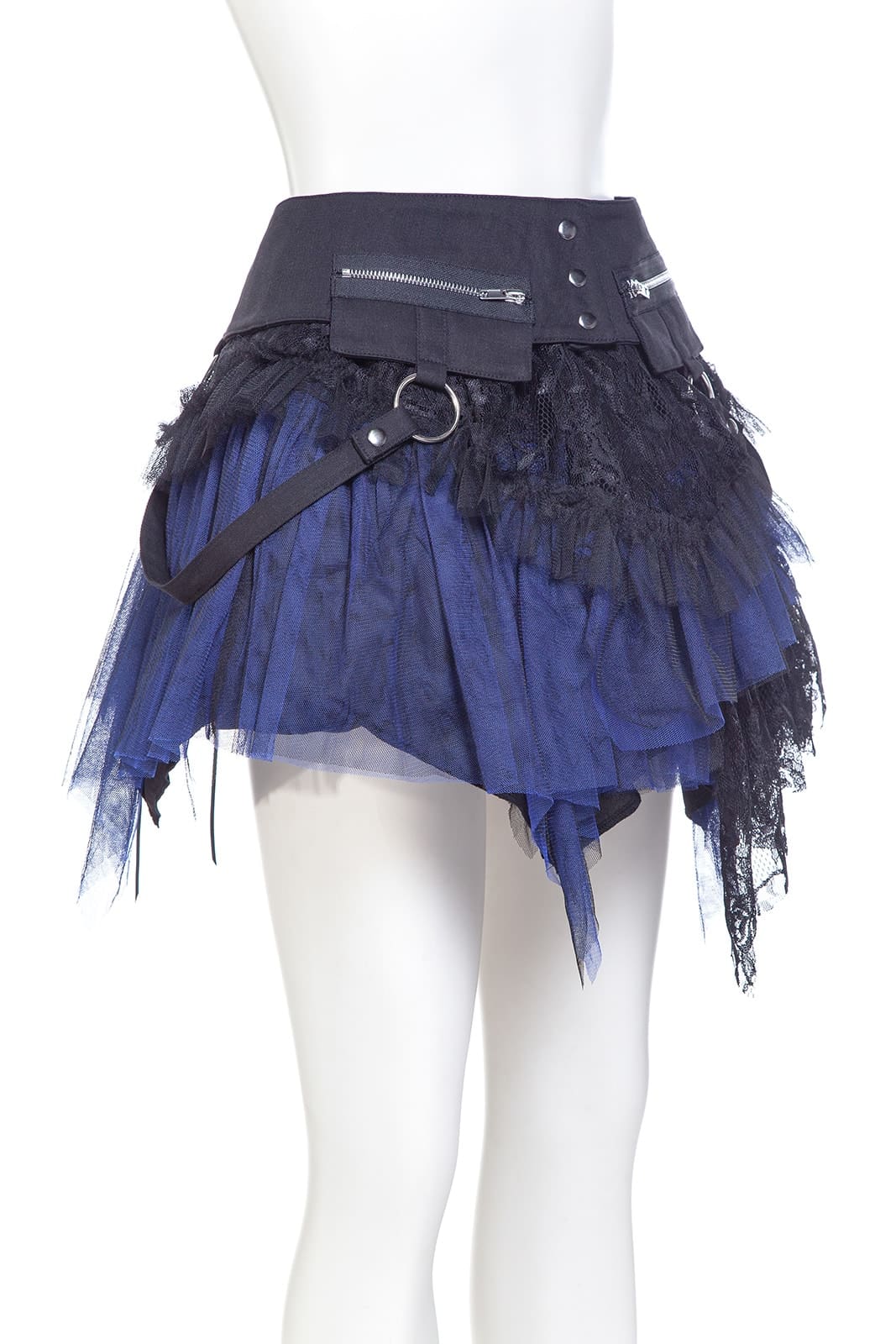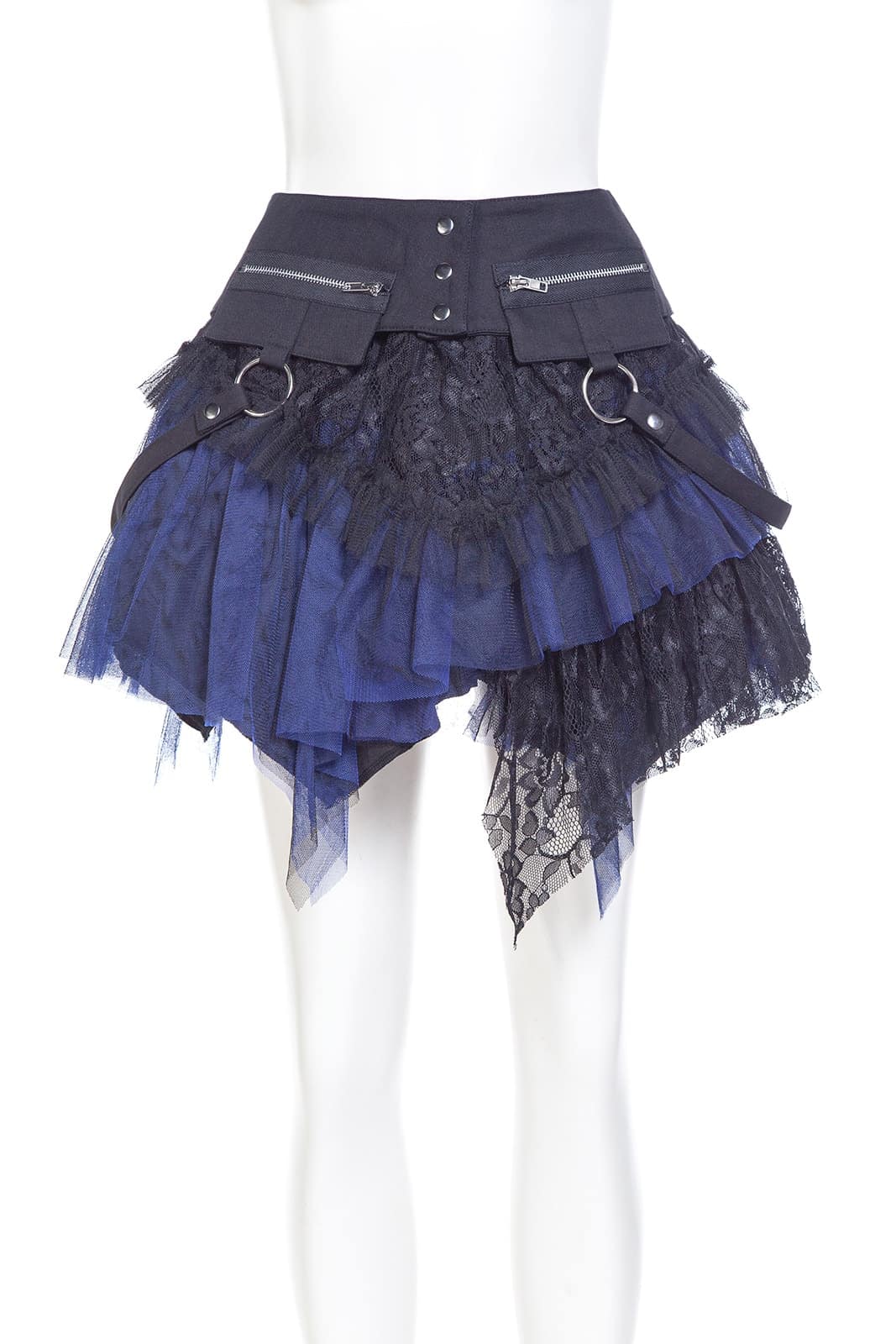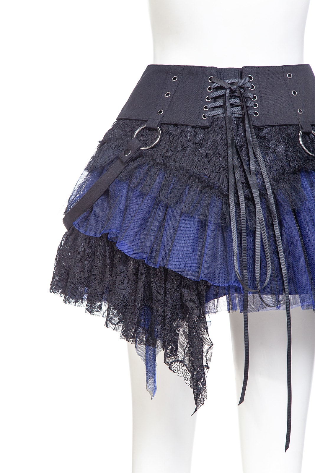 Dieses zweigeteilte Kleidungsstück ist ein echtes Highlight der Gothic-Mode: ein mehrlagiger Minirock mit elastischem Bund und abnehmbarem Overskirt-Gürtel. Der Korsett-inspirierte Bund mit Schnürung, Rüschenlagen, Zipper-Details und Spitze verleiht dem Rock eine auffällige Grunge-Dolly-Note. Beide Teile können separat oder zusammen getragen werden – perfekt für Festivals, Fotoshootings oder ein ausdrucksstarkes Alltags-Outfit. Kombiniert mit Overknee-Socken, Netzstrumpfhosen und Crop Top entsteht ein Look voller Attitüde. Metallringe und der asymmetrische Saum sorgen für zusätzlichen Edge; passt ideal zu Plateauschuhen, Wedges, Chunky Heels oder Combat Boots.
