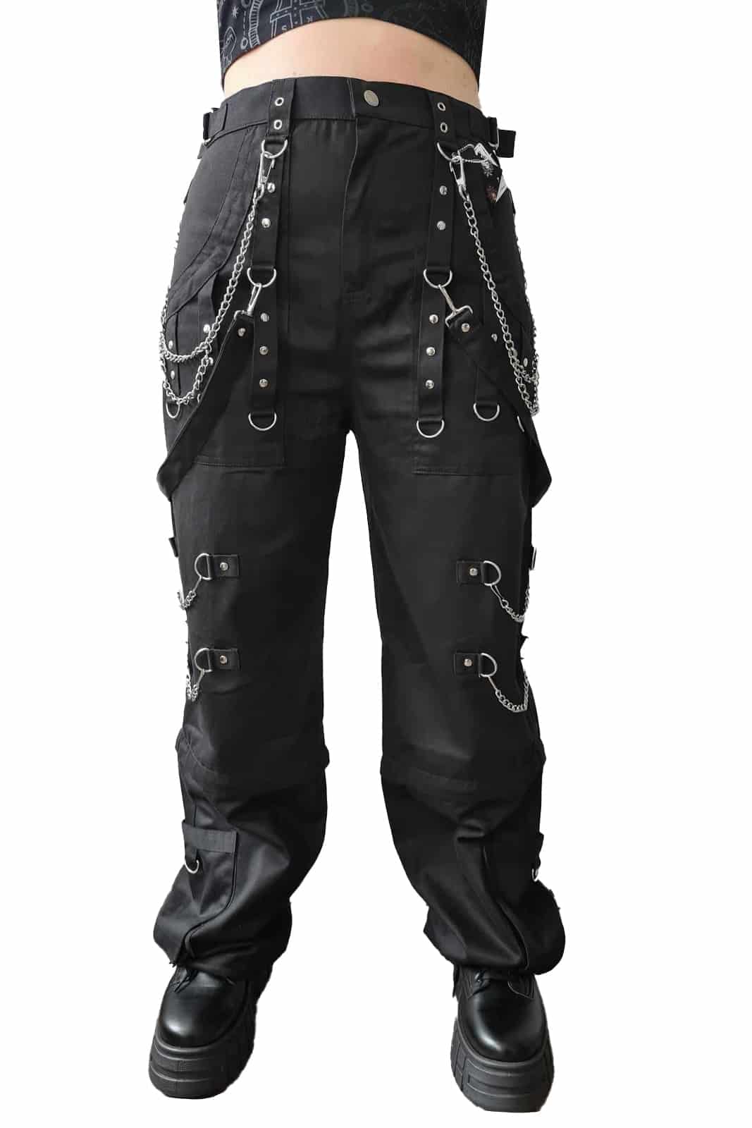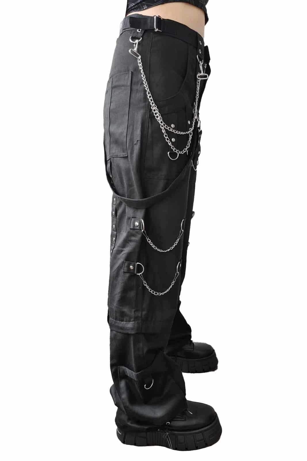 Gothic Hose aus einer robusten Baumwollmischung. Mit zwei Front- und zwei Gesäßtaschen. Die Bundweite kann reguliert werden. Mit Knopf und Reißverschluß.