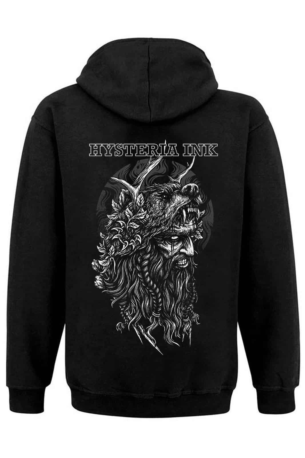 Das Motiv Viking Bear zeigt auf der Rückseite eine wilde Fusion aus Mensch und Tier: ein bärischer Kriegerkopf mit mächtigem Fell, Hörnern und nordisch inspirierten Details. Der Ausdruck ist roh, ungezähmt und voller Kampfgeist – eine kraftvolle Darstellung von Stärke und spiritueller Verbundenheit zu alten Totemtieren, perfekt für Fans von Nordic Mythology und Pagan Art.