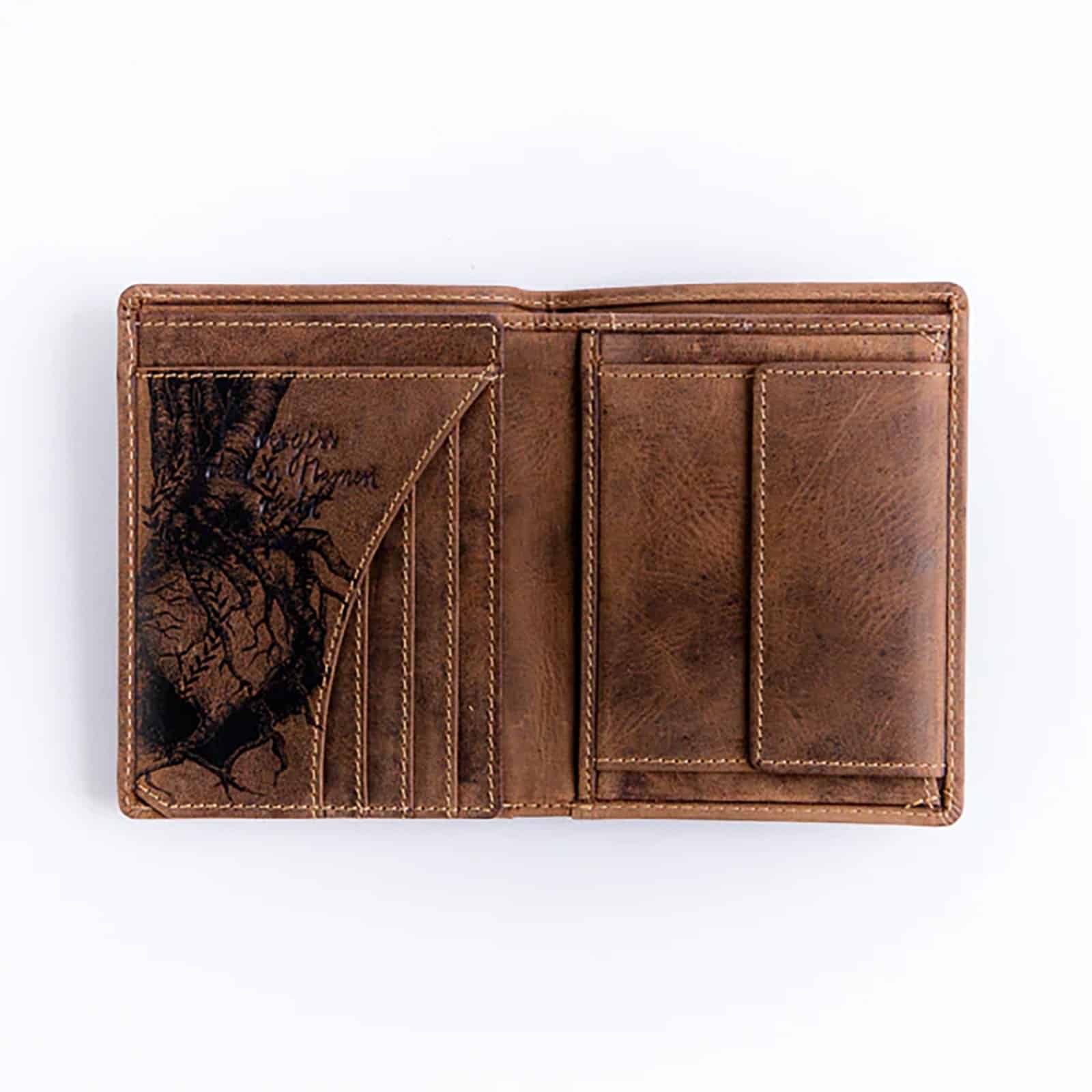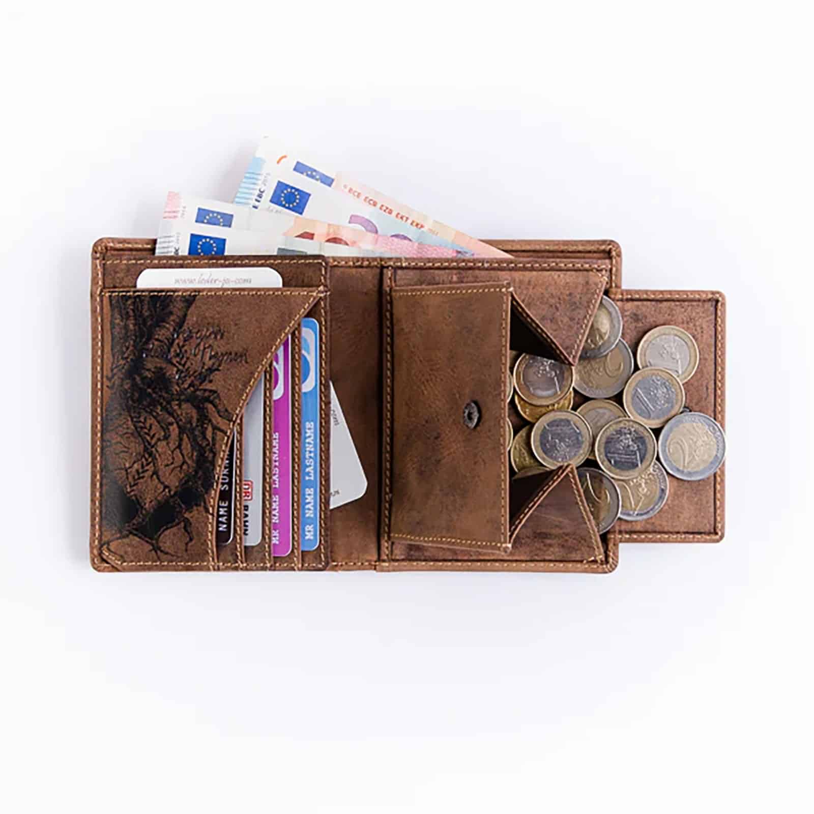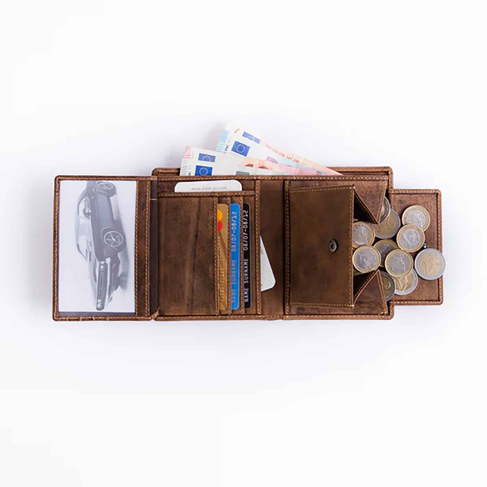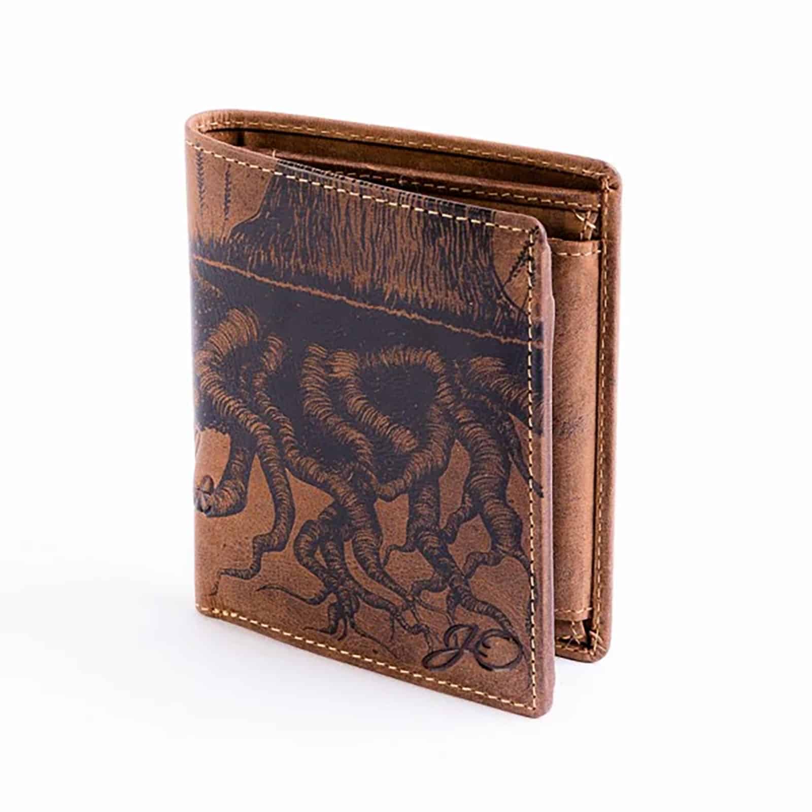 Hochkante Geldbörse mit Motiv aus Büffelleder.