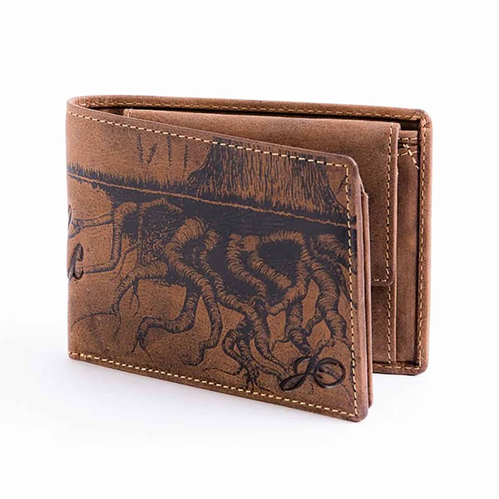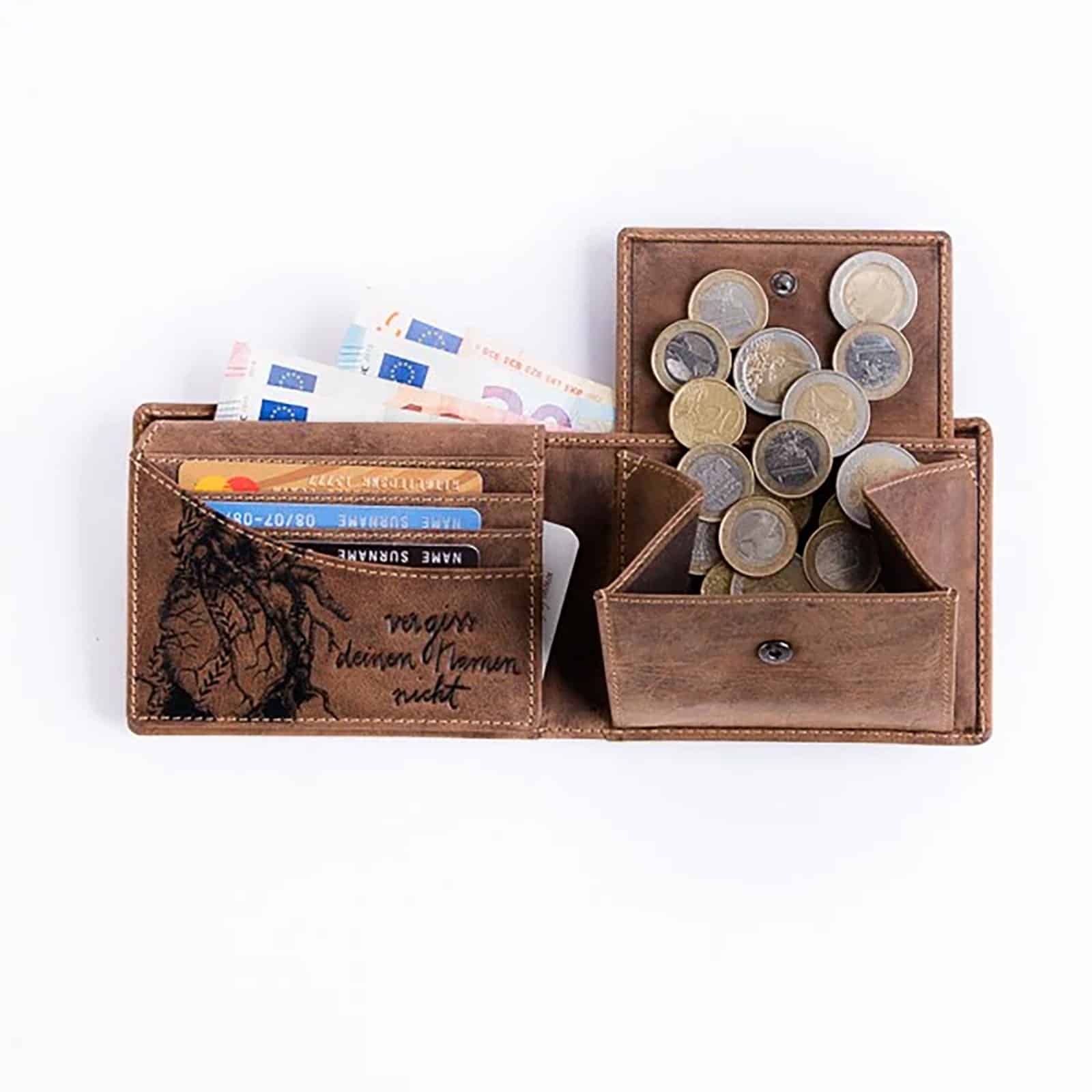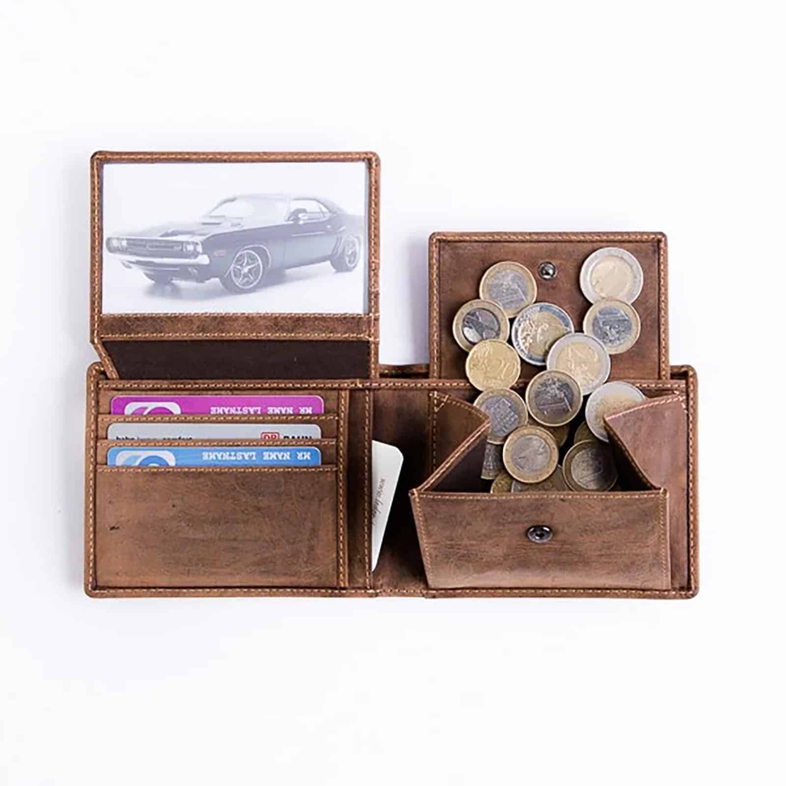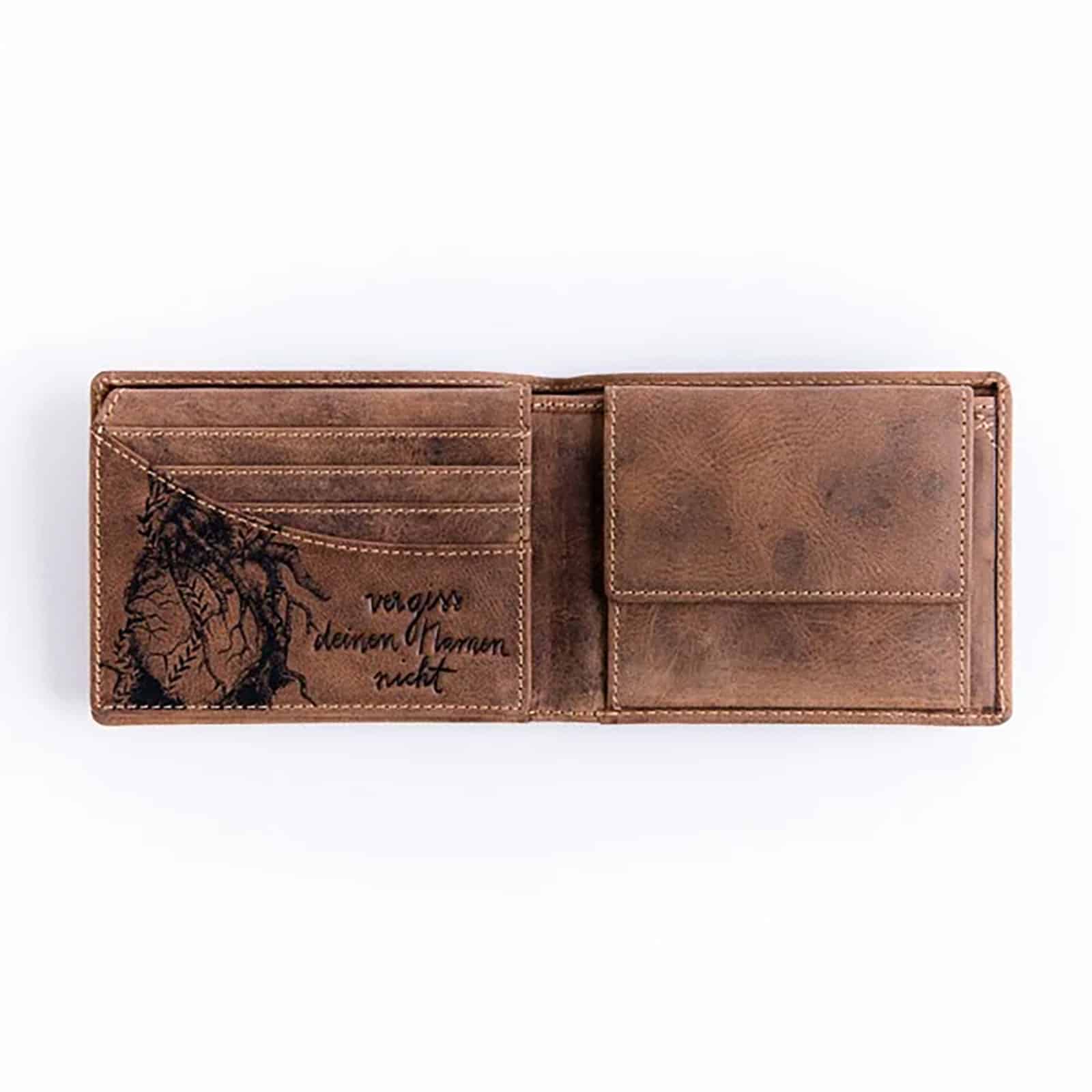 Geldbörse im Querformat mit Motiv aus Büffelleder.
