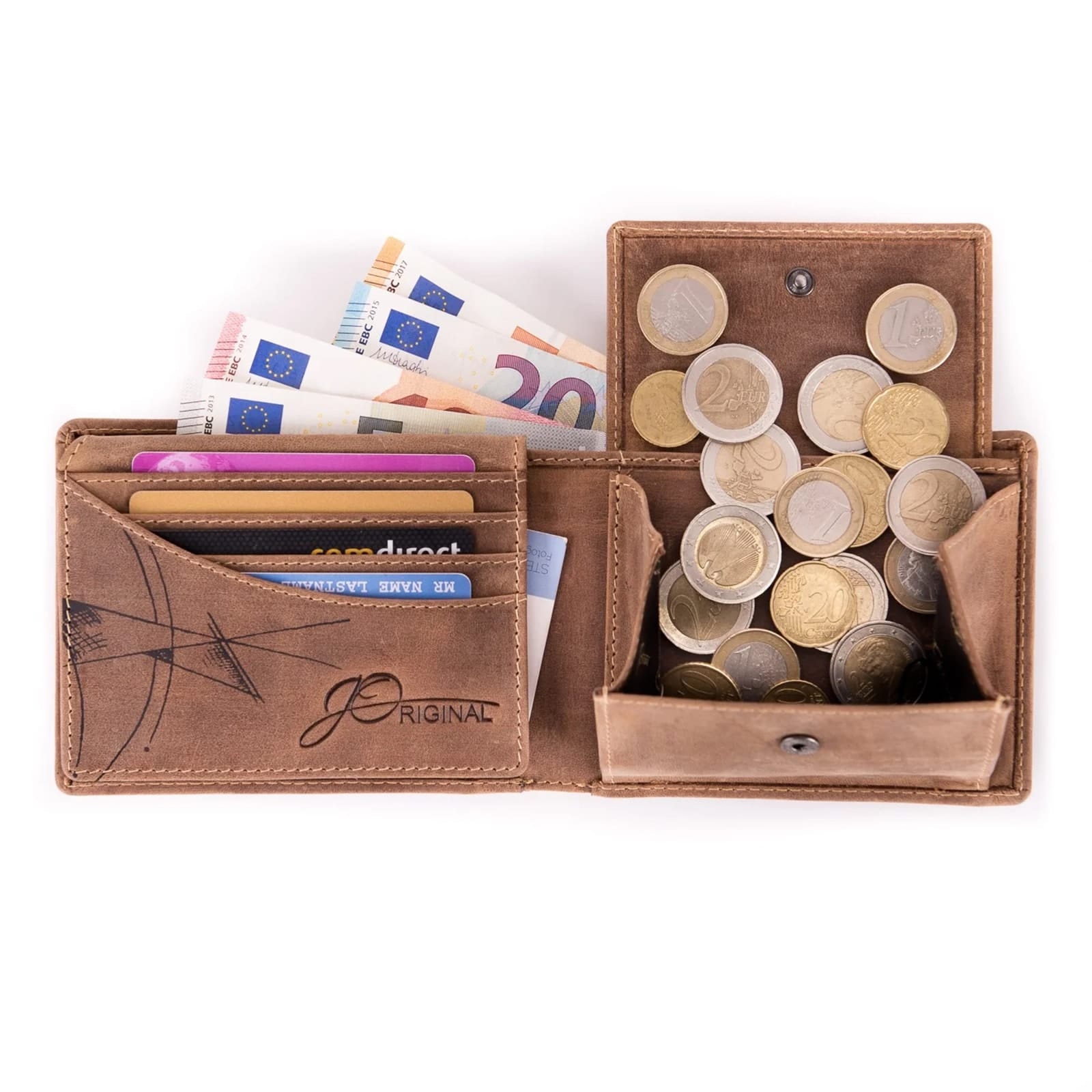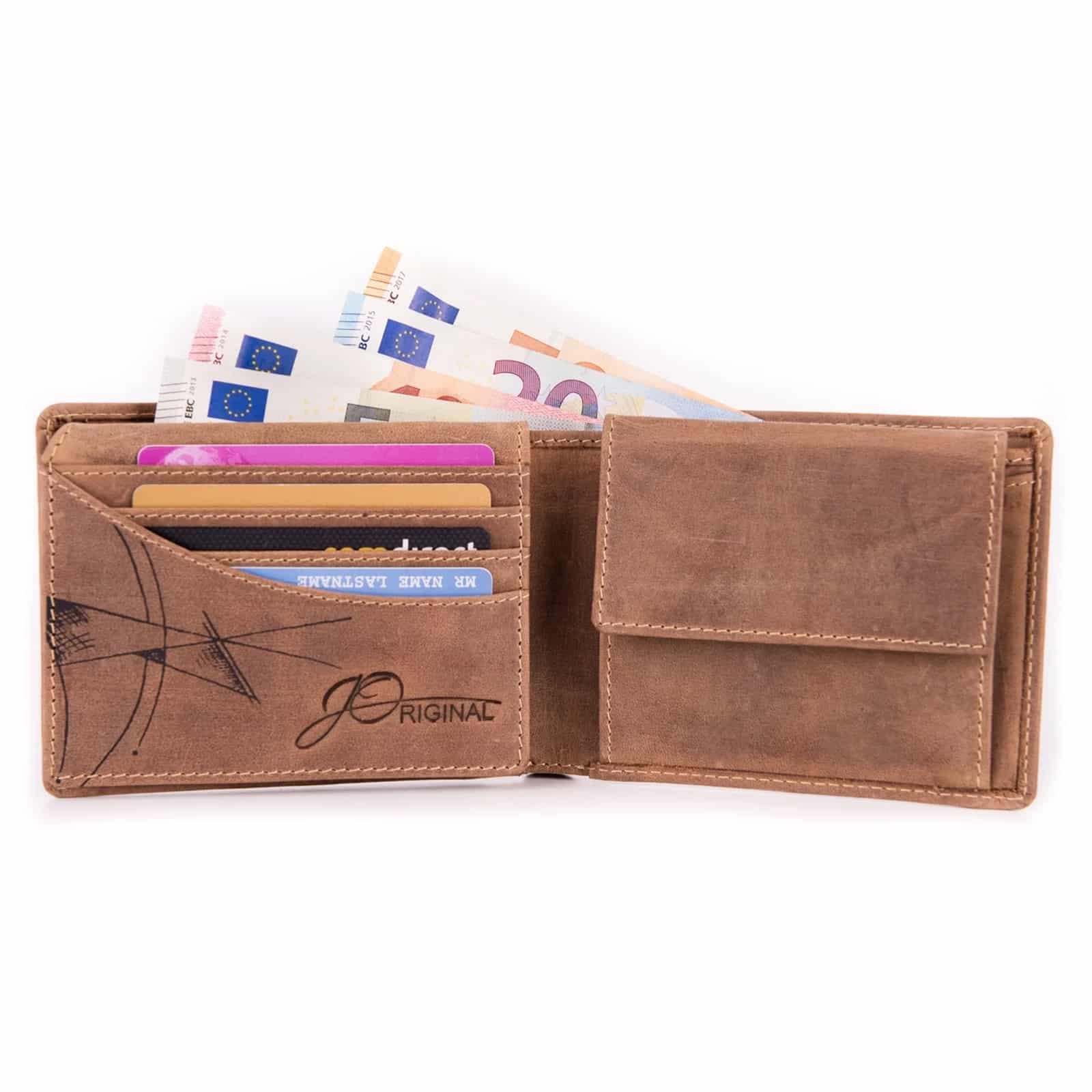 Jede JOriginal-Geldbörse ist ein Unikat und die bei diesem Leder auftretende unregelmäßige Narbung, Kratzer sowie der eventuelle Abrieb der Farbe unterstreichen die Echtheit.