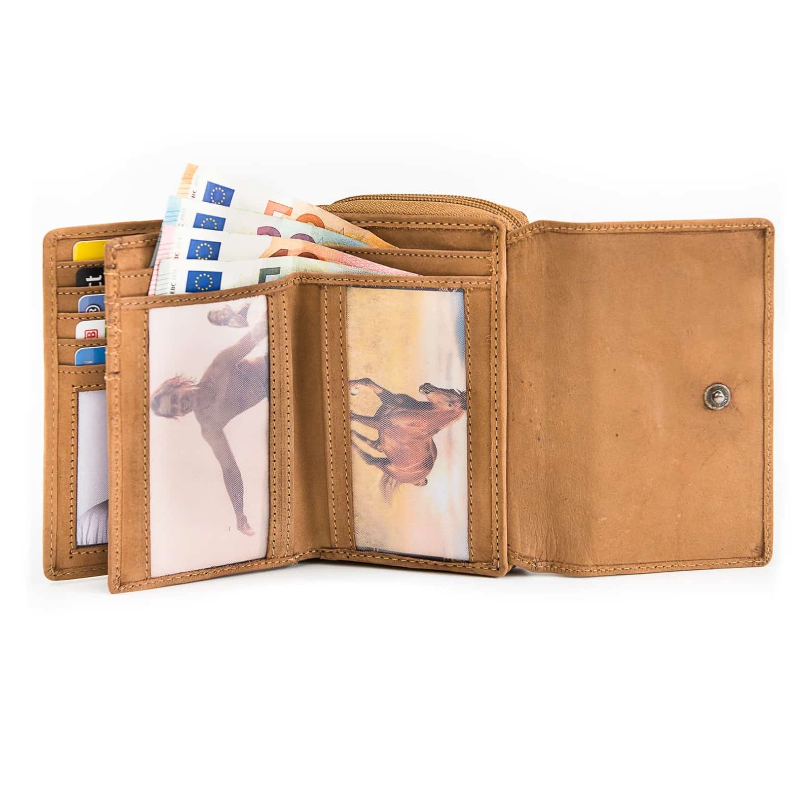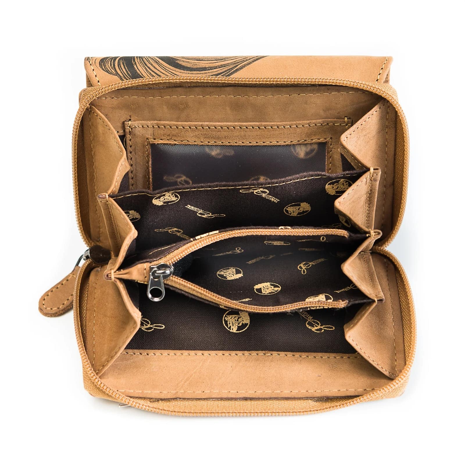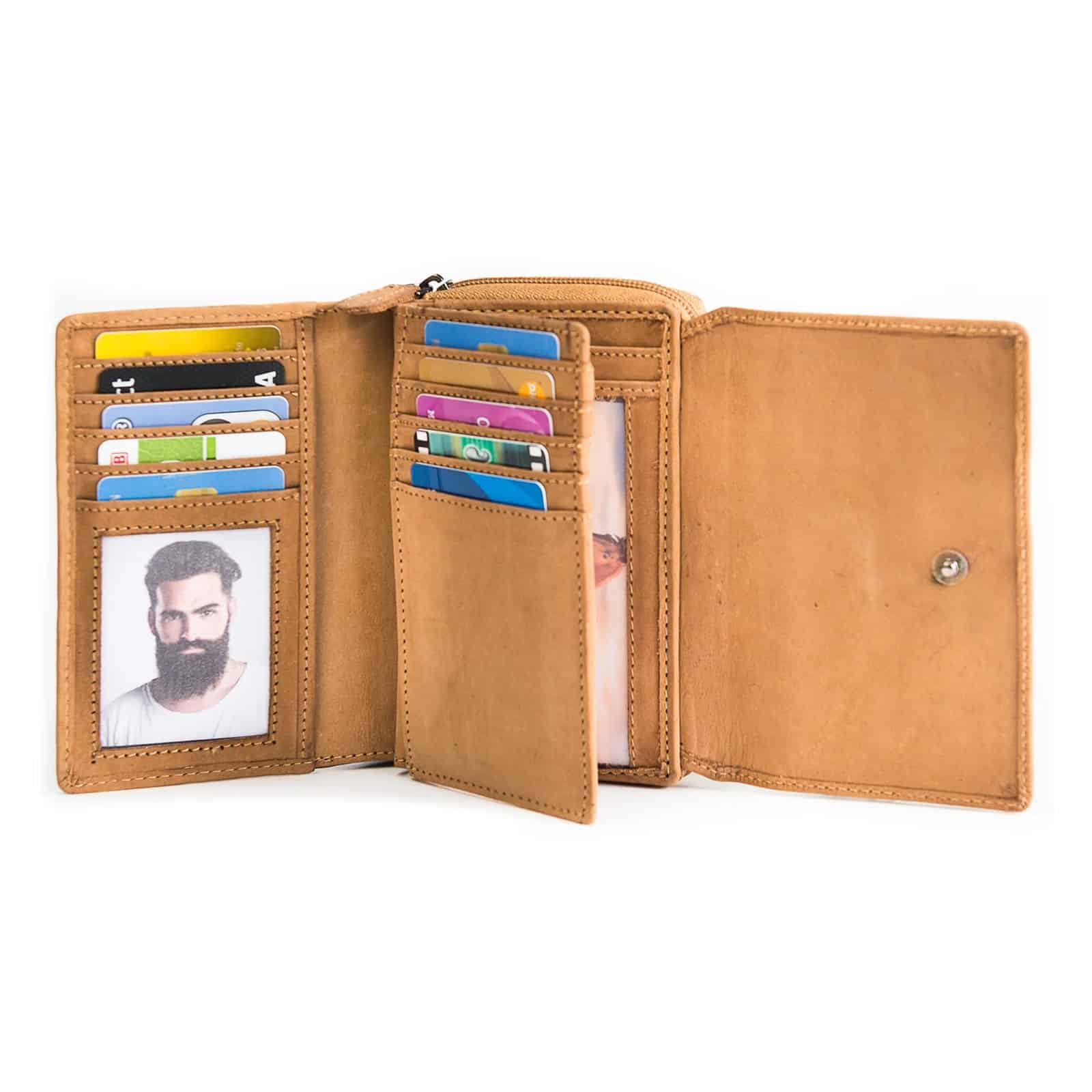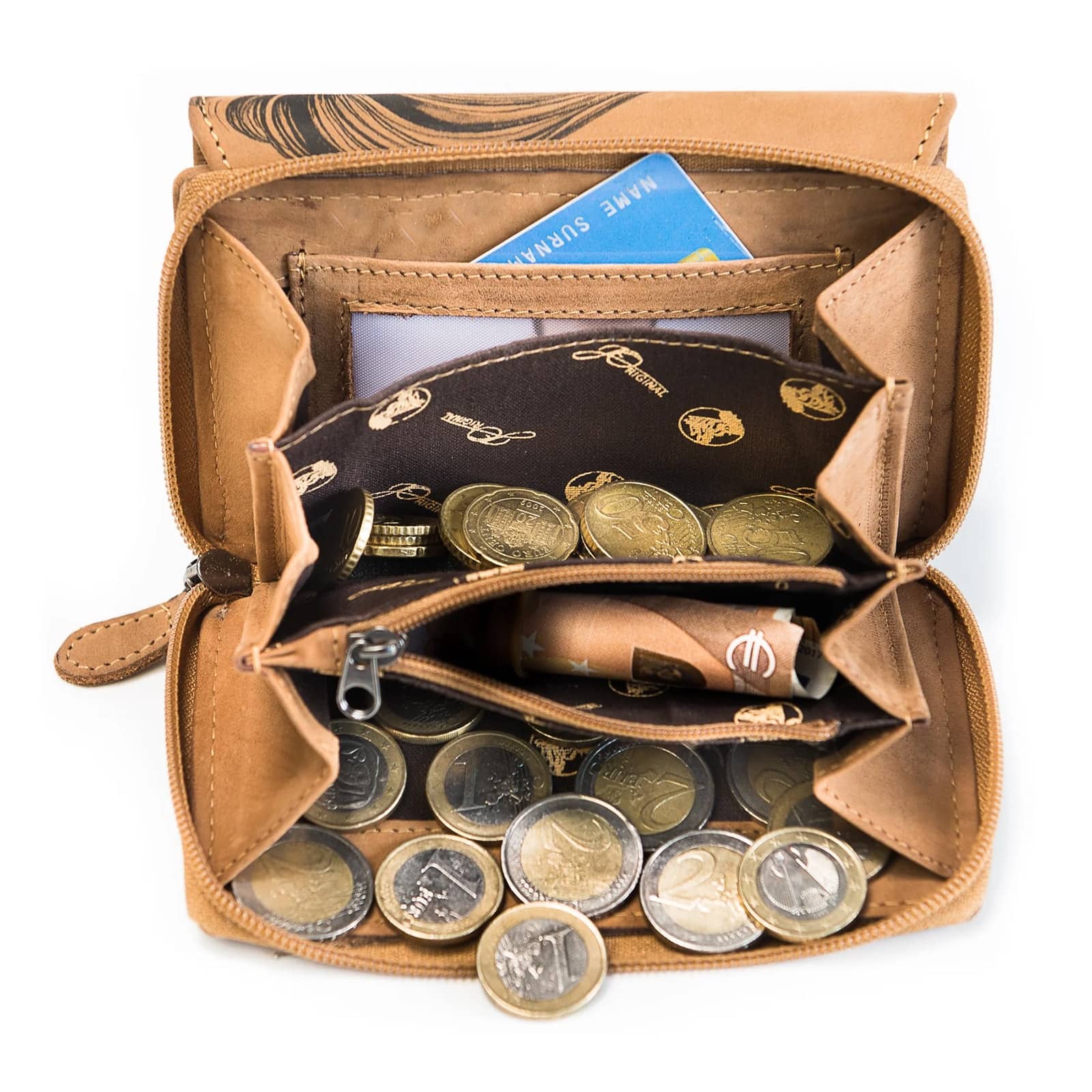 Kompakte Geldbörse mit Motiv aus Büffelleder.